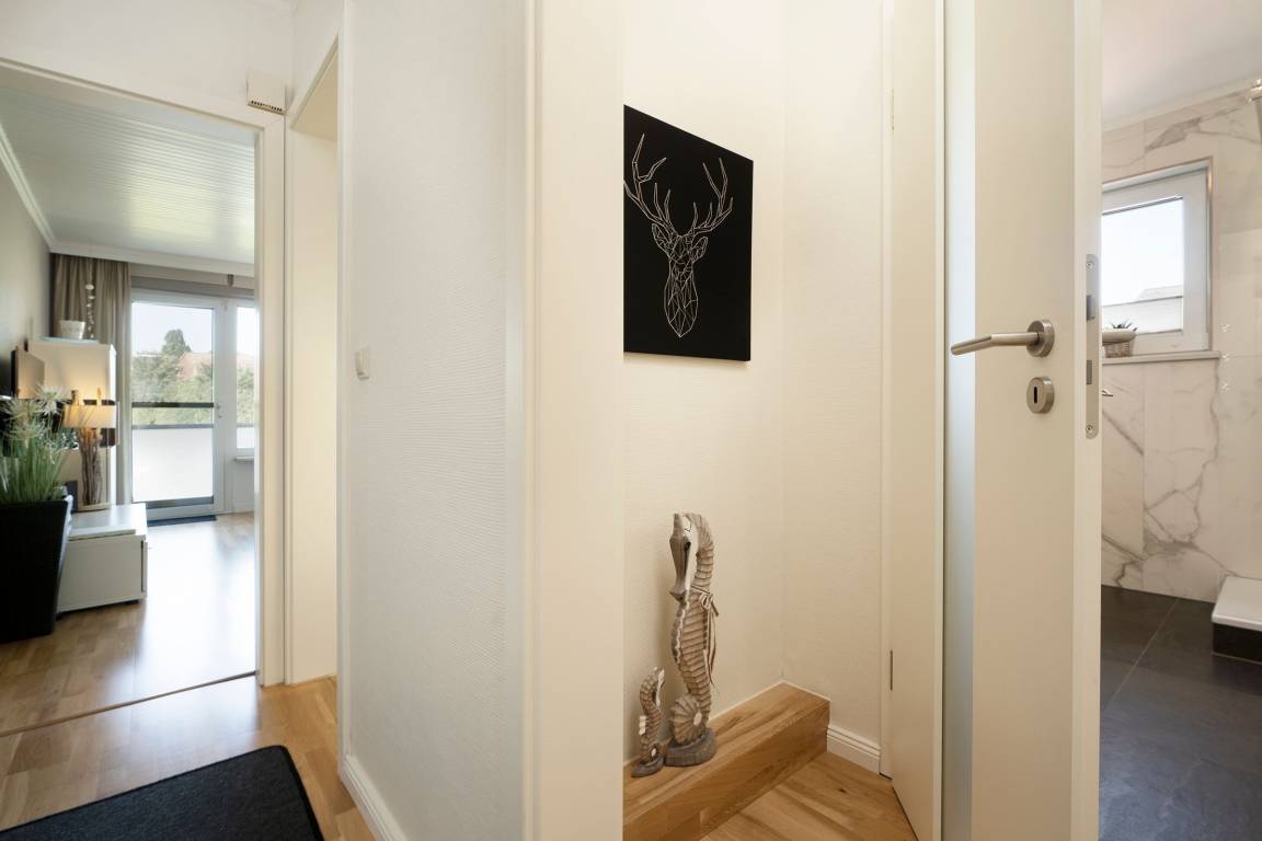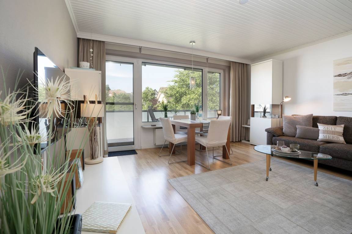 Ihre Ferienwohnung befindet sich im Obergeschoss einer gepflegten Wohnanlage mit insgesamt acht Wohneinheiten.