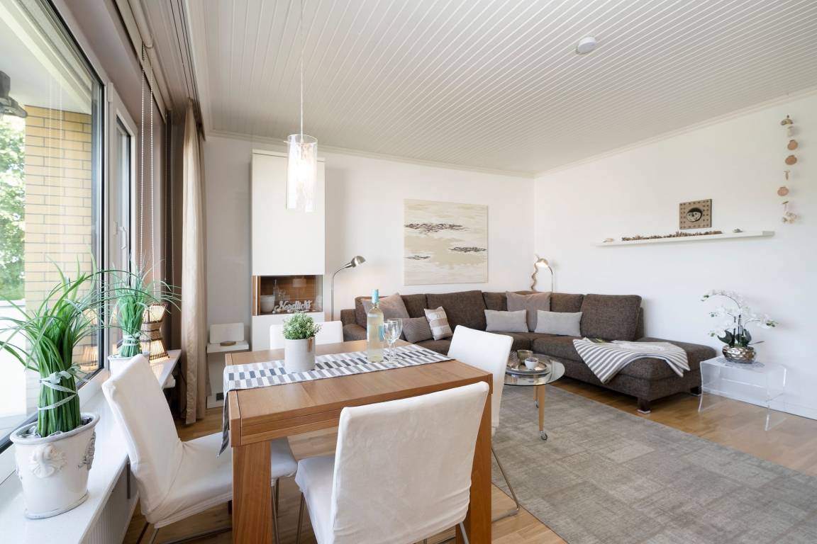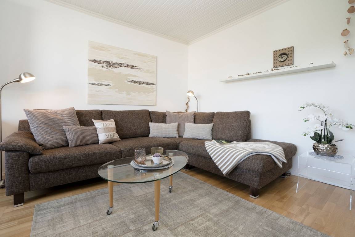 Diese bis ins Detail designte 2-Zimmer-Ferienwohnung liegt im 1. Stock einer kleinen Wohnanlage nur gut 5 Gehminuten vom Strand entfernt.