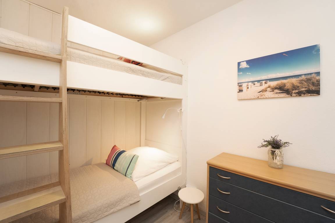 Schlafzimmer 2: 1 Etagenbett (2x 90x200 cm), Verdunkelung: Zimmertür, Platz für ein Babybett vorhanden