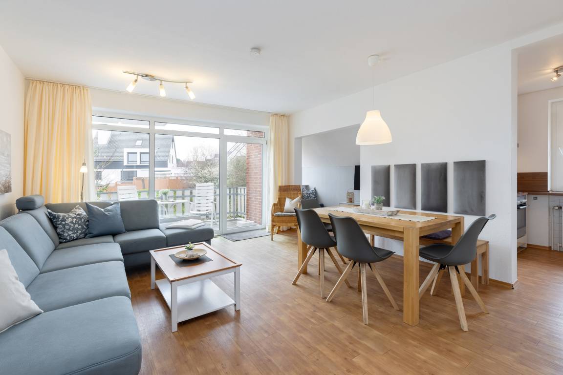 2024 erneuerte, großzügige Balkon-Wohnung im 1. Obergeschoss in zentraler und strandnaher Lage (200 m zum Kurzentrum und Hauptstrand) für bis zu 6 Personen auf 94 m² Wohnfläche mit 3 Schlafzimmern und 2 PKW-Stellplätzen.