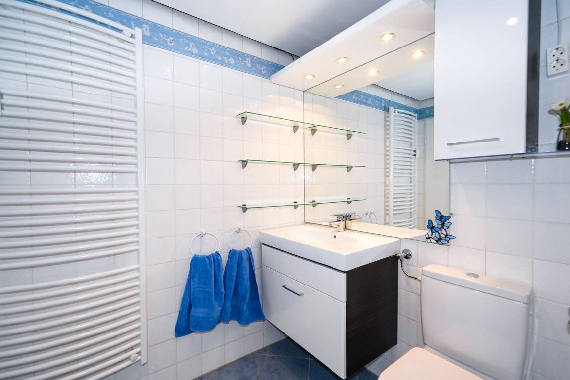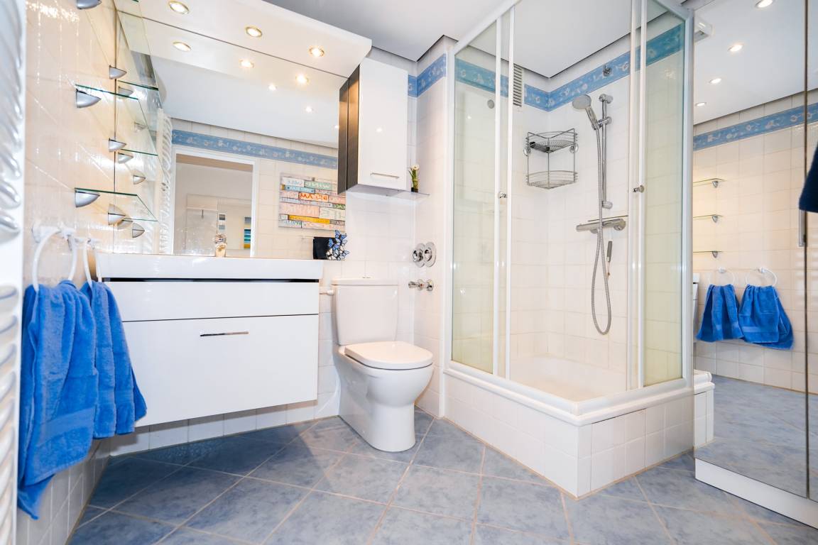 Die separate Küche verfügt über einen Geschirrspüler, Cerankochfeld, Kühlschrank, einen separaten Gefrierschrank und Mikrowelle mit Backfunktion. Im Badezimmer finden Sie eine Eckdusche, Waschbecken, WC und Handtuchheizkörper vor.