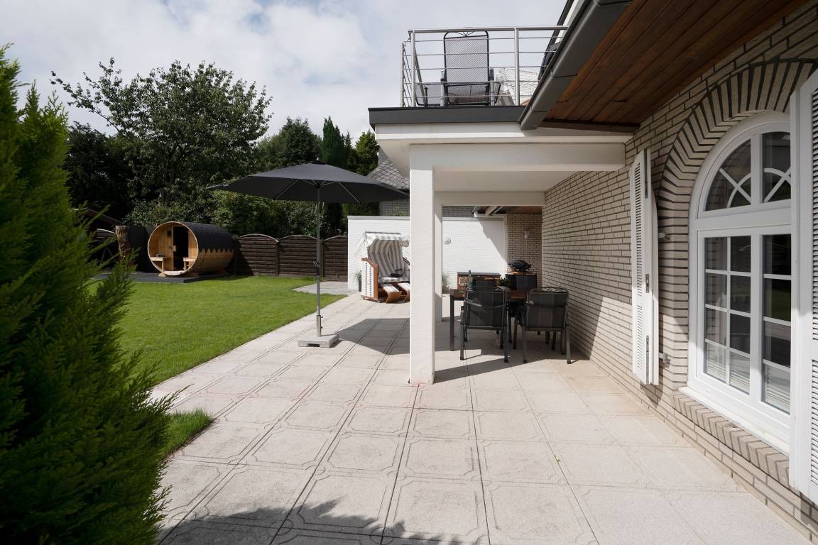 Lassen Sie den Tag auf der Terrasse mit eigenem Strandkorb entspannt ausklingen.