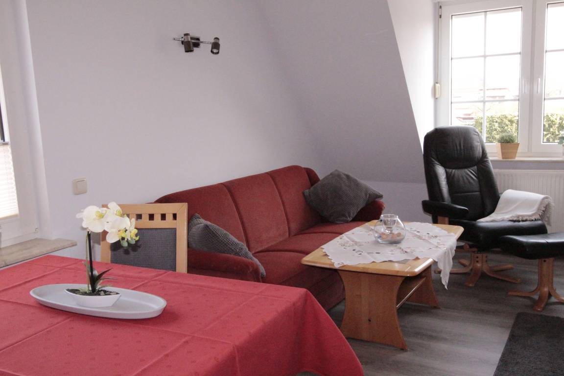 Die Wohnungen sind in der 1. Etage und ca. 40 qm groß, modern möbliert und haben ein separates Schlafzimmer sowie Dusche und WC. Die Wohnungen sind komplett mit Laminat ausgelegt. Im Wohnzimmer befinden sich ein 2er Sofa mit Beistelltisch sowie ein Esstisch mit Stühlen. Die Küchenzeile ist mit einem 4 Platten Ceranfeld, einem Kühlschrank mit Gefrierfach und Geschirrspülmaschine ausgestattet, ebenfalls sind eine Mikrowelle, Kaffeemaschine, Toaster und Wasserkocher, Geschirr, Töpfe, Pfannen und Gläser vorhanden.