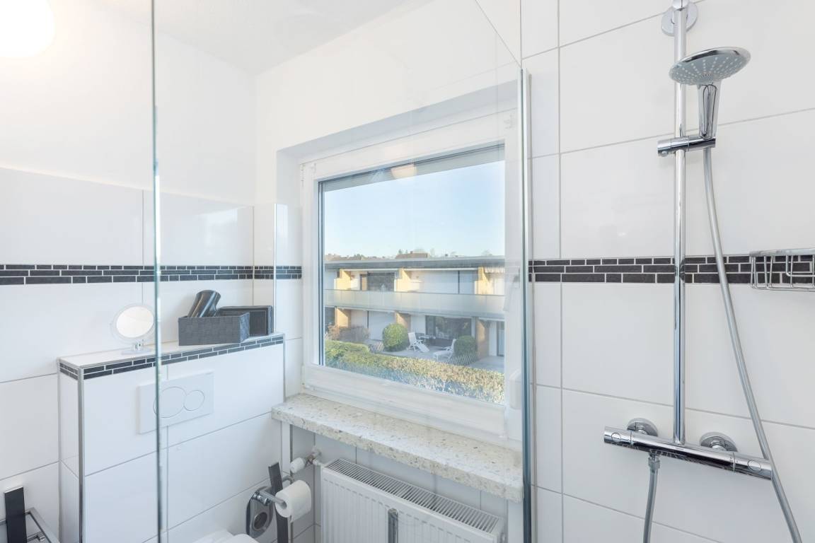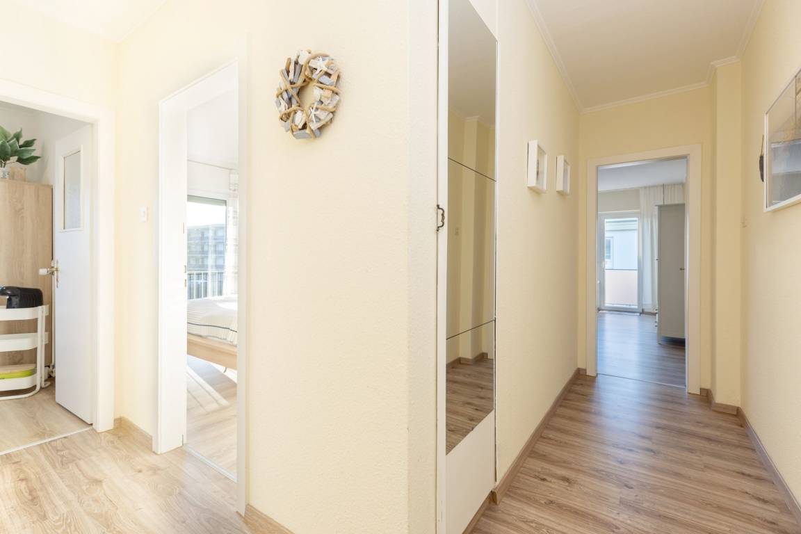 Durch den Flur mit Garderobe entlang gelangen Sie in das lichtdurchflutete Wohn- und Esszimmer. Auf den beiden Sofas lassen sich gemütliche Stunden vor dem Fernseher oder dem Kaminofen verbringen. Der Esstisch vor dem großen Balkonfenster ermöglicht Ihnen gemeinsame Mahlzeiten mit Blick nach draußen. Die geschlossene Küche ist u. a. mit einem Geschirrspüler, einem Kühlschrank und einem Backofen gut ausgestattet. Eine Kaffee-Kapselmaschine (Tassimo) sorgt für den täglichen Kaffeegenuss. Das separate Schlafzimmer verfügt über ein Doppelbett (2x 90x200 cm) und einen Kleiderschrank. Außenjalousien im Wohn- und Schlafzimmer sorgen für einen erholsamen Schlaf. Freuen Sie sich über ein modernes Tageslichtbad mit WC, Dusche, Waschbecken und Spiegelschrank. Der möblierte, überdachte Süd-West-Balkon bietet Ihnen Ruhe und Erholung.