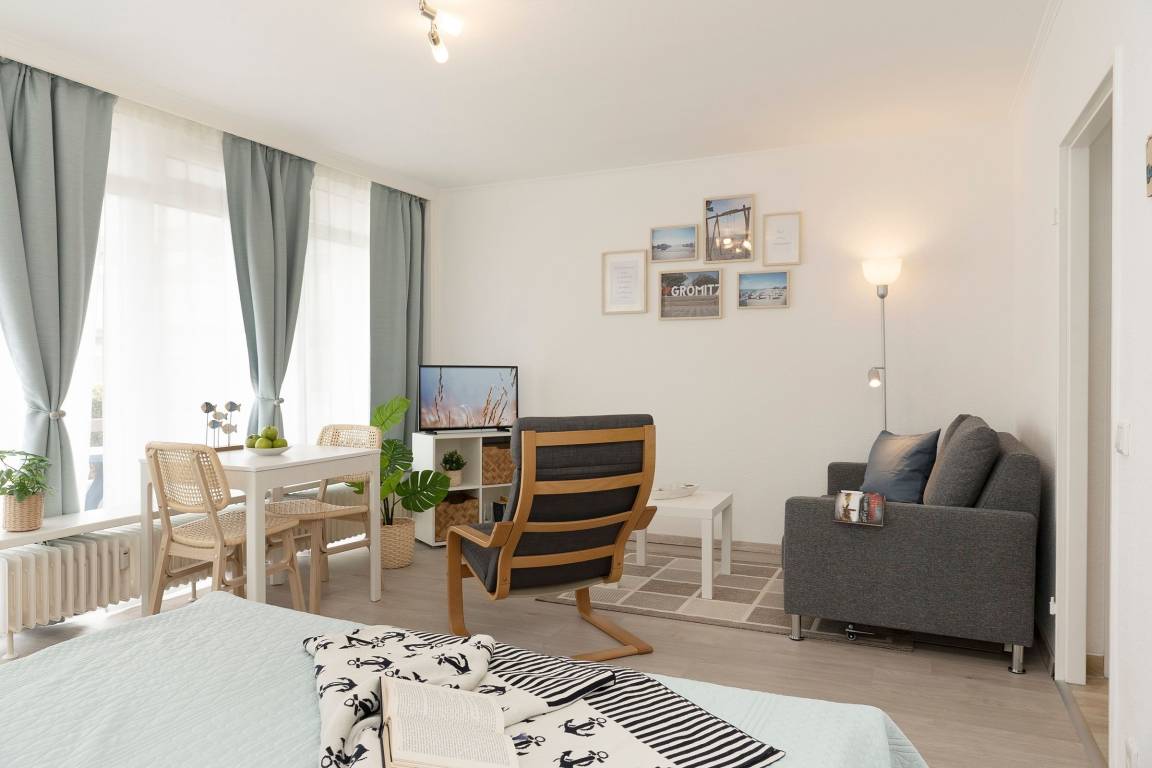 Freuen Sie sich auf einen strandnahen Urlaub in dieser charmanten 1-Zimmer-Ferienwohnung mit Platz für max. 2 Personen auf ca. 33 m² Wohnfläche in bester Lage von Grömitz. Ihr Feriendomizil mit angenehmen Wohnambiente liegt im Hochparterre und befindet sich im Haus Baltic.