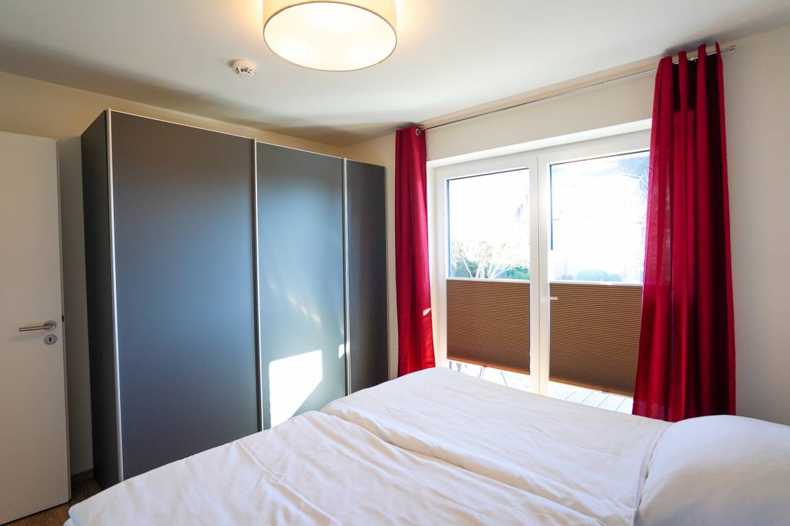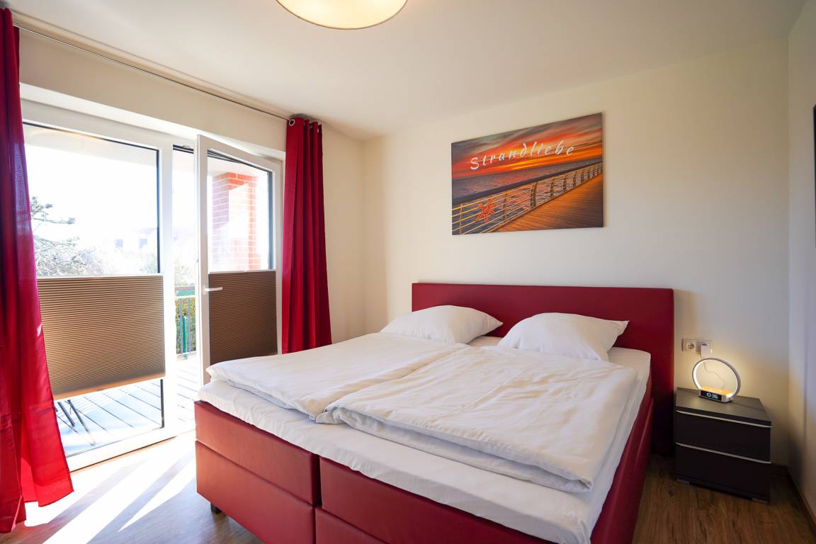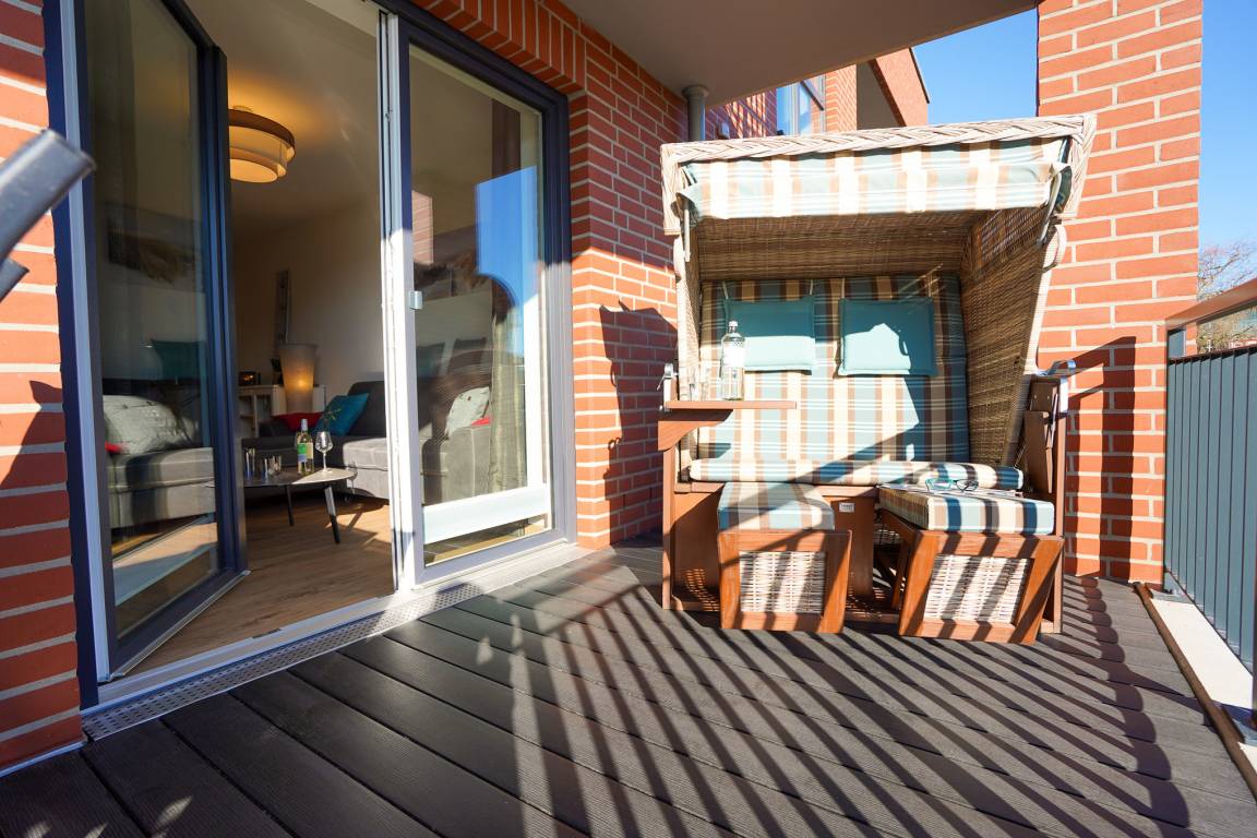 Diese Ferienwohnung lässt keine Wünsche offen. Das Herzstück bildet der große Balkon, der sich über den gesamten Wohn- und Schlafbereich erstreckt. Genießen Sie Ruhe und Entspannung in Ihrem gemütlichen Strandkorb oder an Ihrem großzügigen Esstisch.