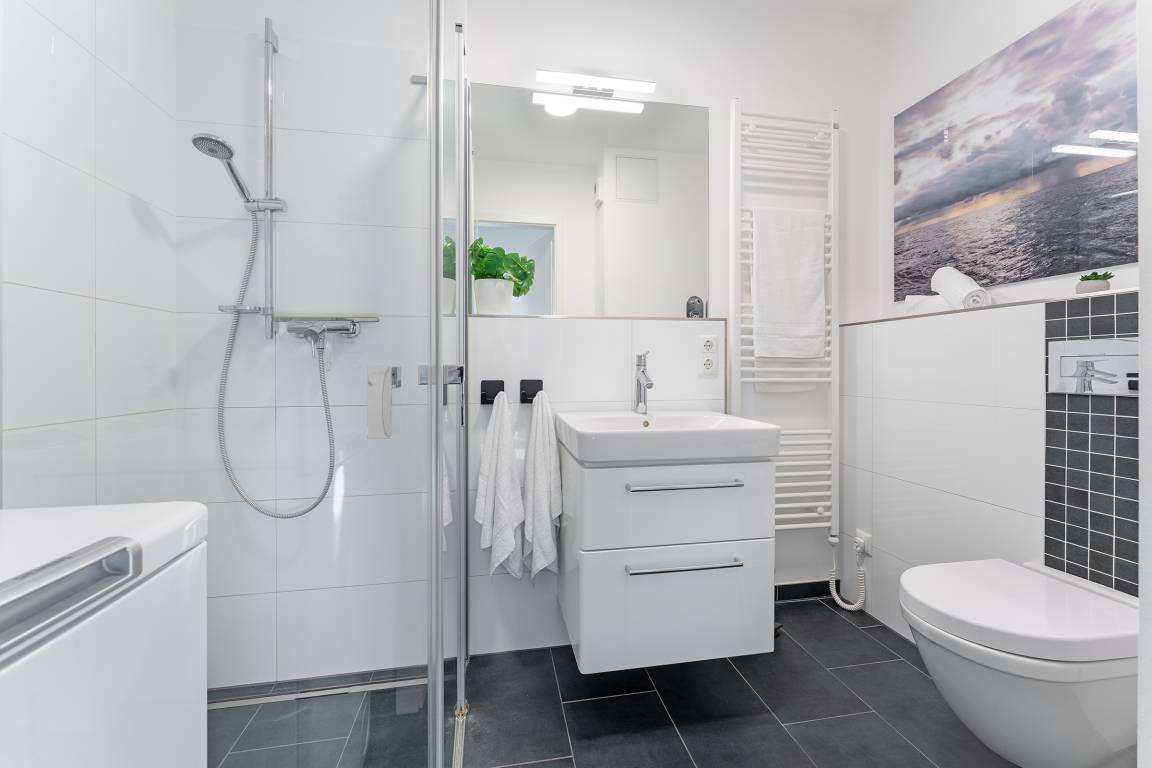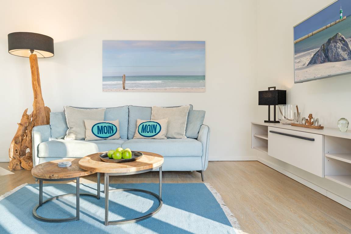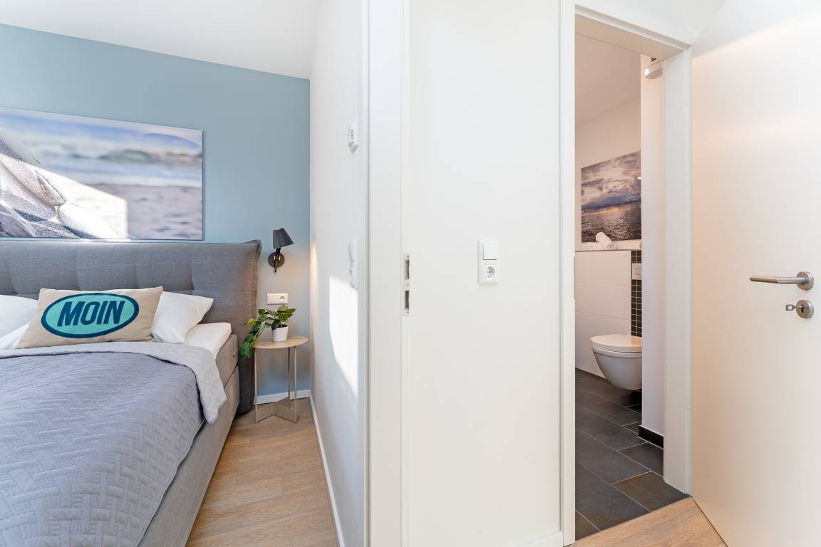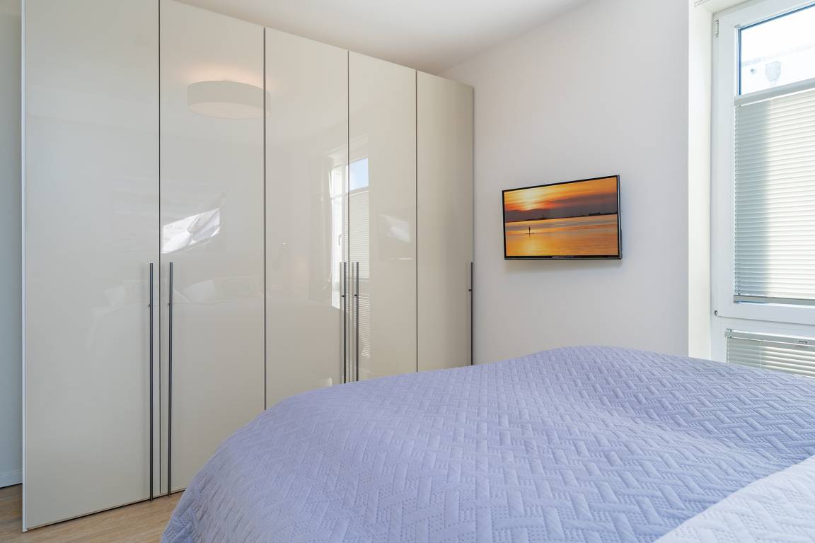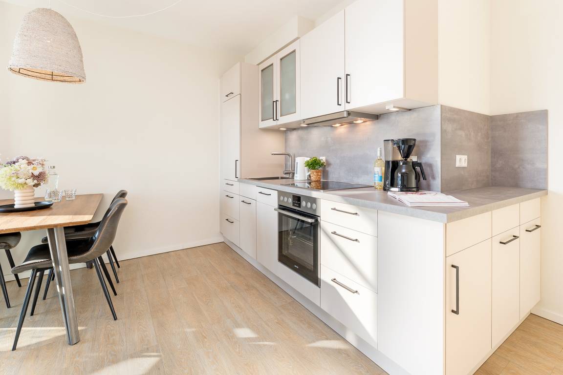 Neben einem großzügigen und lichtdurchfluteten Wohnbereich mit Schlafsofa (160x200 cm) verfügt die Wohnung über ein separates Schlafzimmer mit einem komfortablen Boxspringbett (180x200 cm). Hier finden Sie ausreichend Platz für Ruhe und Erholung. Die voll ausgestattete Küche bietet alles, was Hobbykoch-Herzen höher schlagen lässt. Bereiten Sie problemlos Ihre Mahlzeiten zu und genießen Sie gesellige Kochabende mit Freunden und Familie. Am Esstisch mit ausreichend Platz können Sie dann gemeinsam essen. Für Unterhaltung ist mit einem großen Flat-TV und kostenlosem WLAN-Anschluss ebenfalls gesorgt. Starten Sie Ihren Tag auf dem charmant angelegten Balkon mit einem heißen Kaffee und lassen Sie sich von dem (saisonal) wunderbaren Blick auf die Ostsee verzaubern. Für die tägliche Körperhygiene steht Ihnen ein modernes Badezimmer mit bodentiefer Dusche und Waschmaschine zur Verfügung.