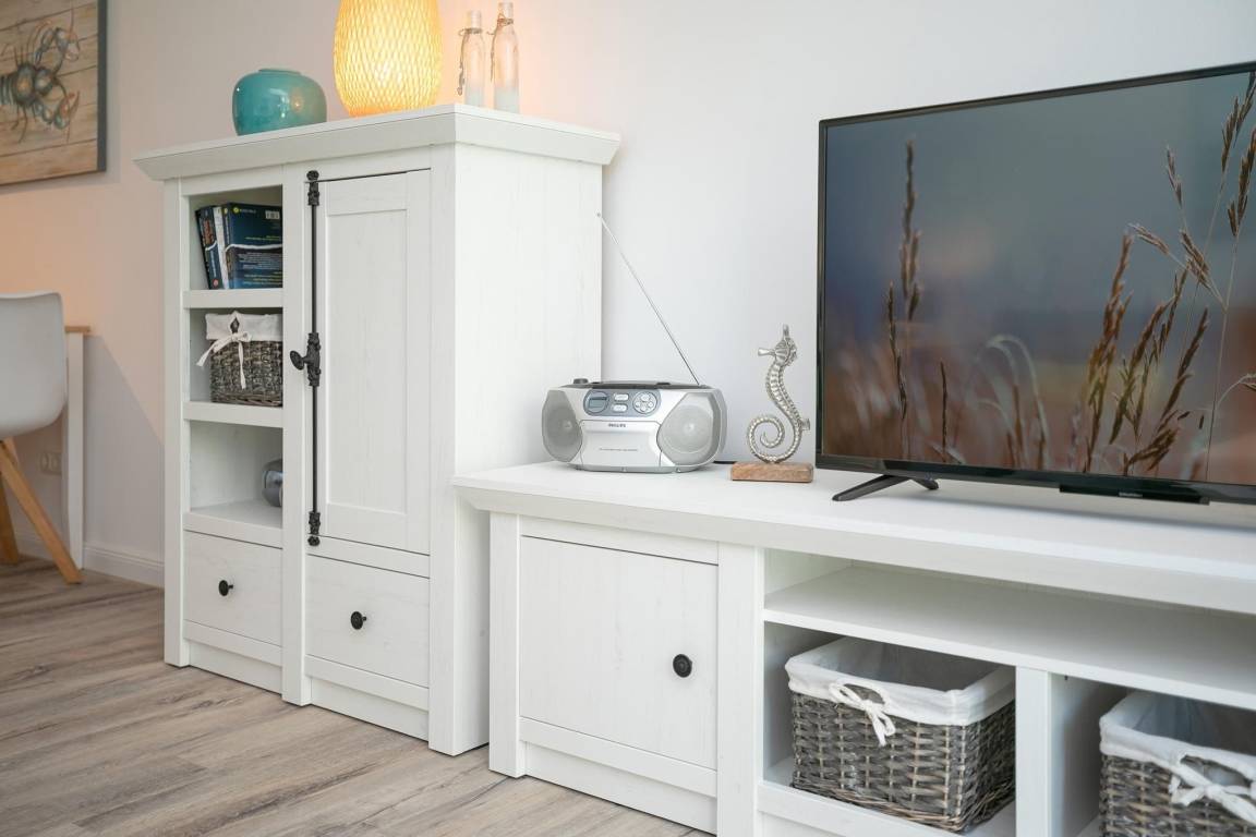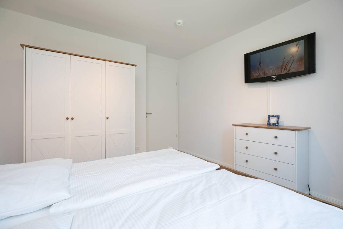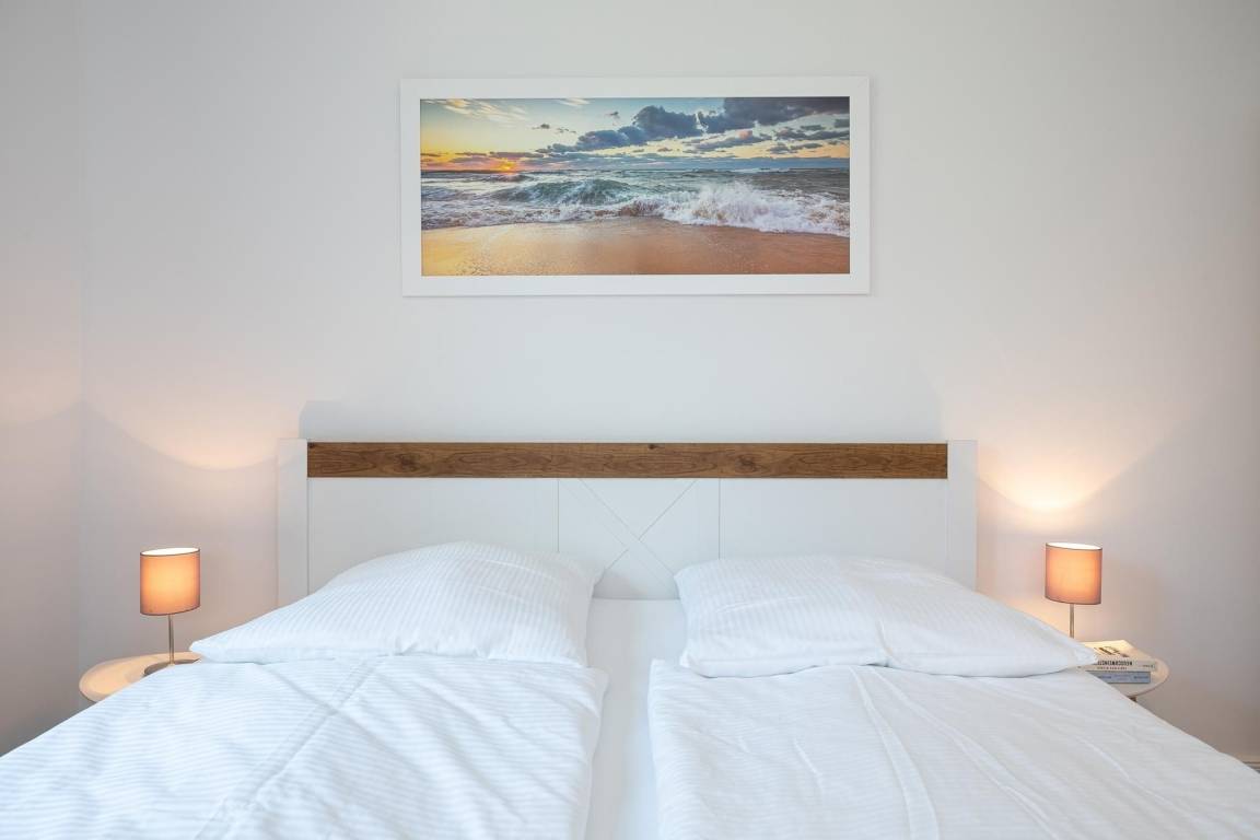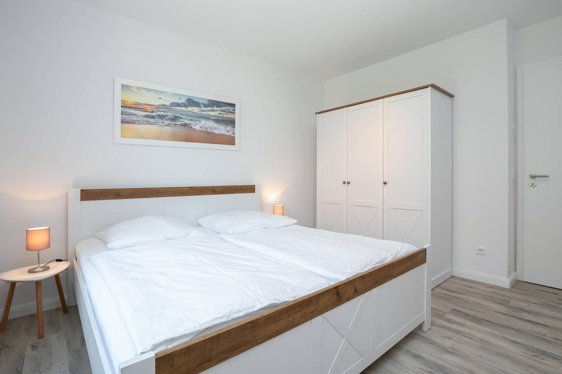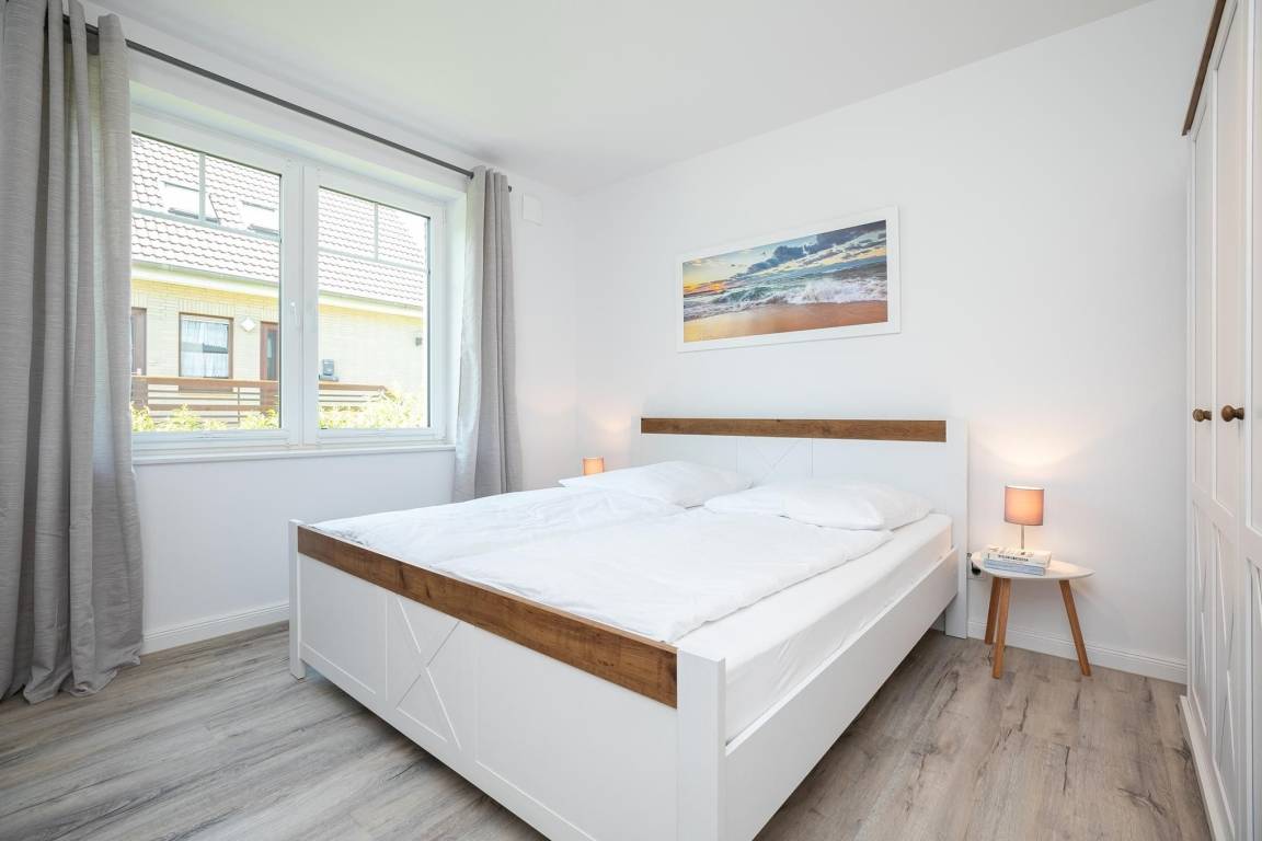 Treten Sie ein in diese schöne und helle ca. 63 m² große Erdgeschoss-Wohnung. Ausgelegt für 2 Personen haben Sie im Schlafzimmer ein großes, rückenfreundliches Doppelbett (2x 90x200 cm) und elektrische Außenrollos, die für geruhsame Nächte sorgen.