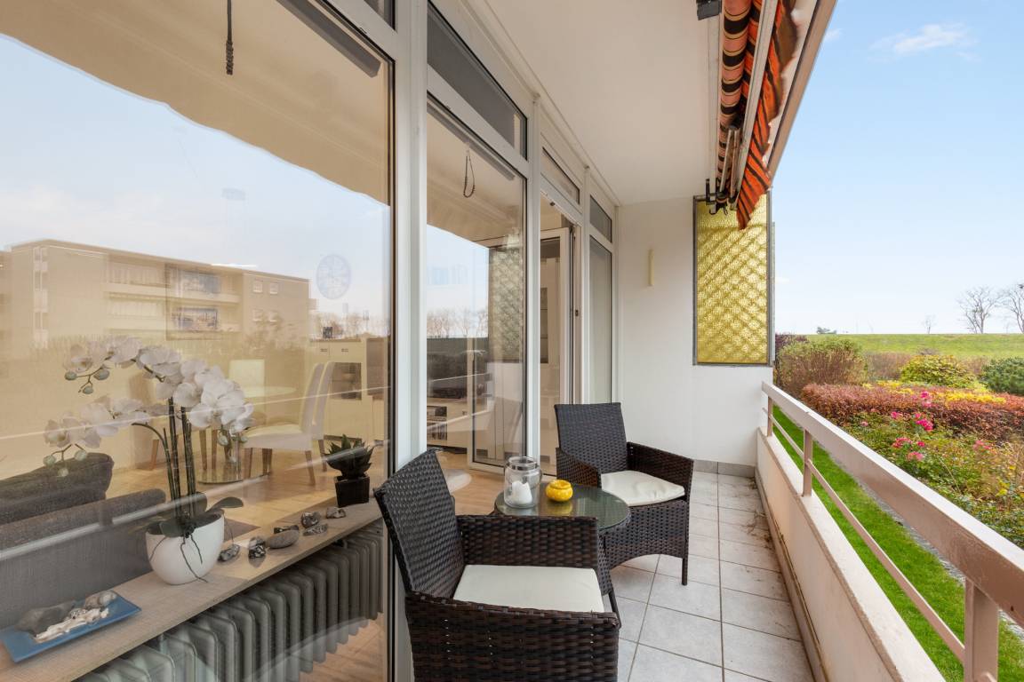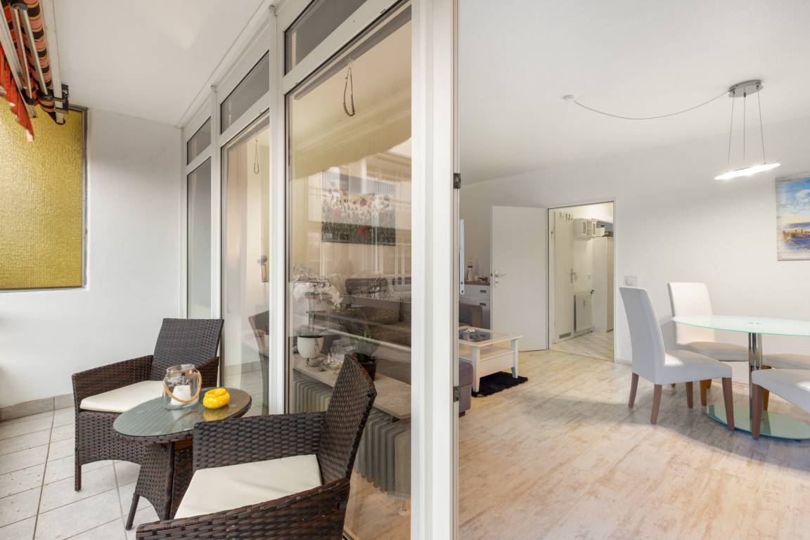 Balkon in westliche Richtung mit Markise, PKW-Abstellplatz, Fahrradraum, Waschmaschinen und Trockner im Haus (gegen Gebühr).