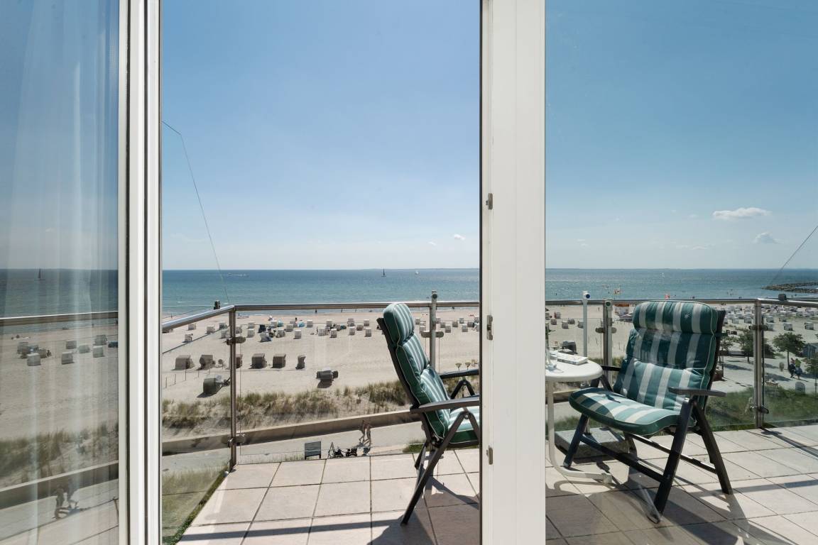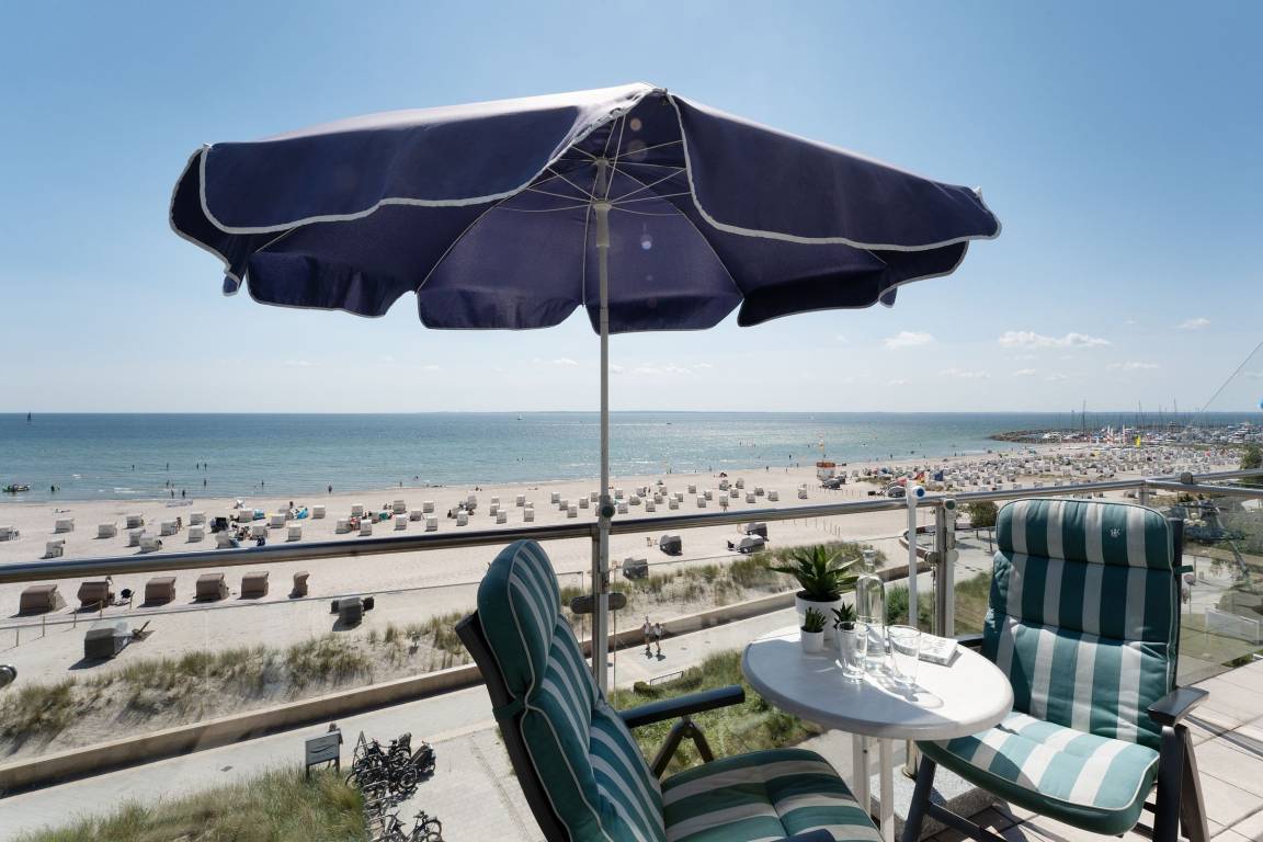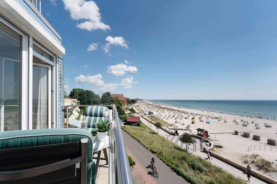 Der schönste Blick von Grömitz: Von dieser Wohnung haben Sie nach Süden einen freien Blick auf die Lübecker Bucht, das Meer, den Strand und die Kurpromenade von der Seebrücke bis zum Hafen.