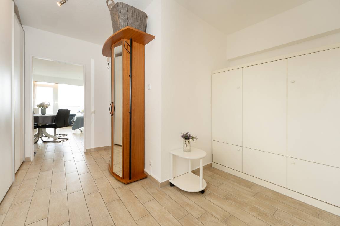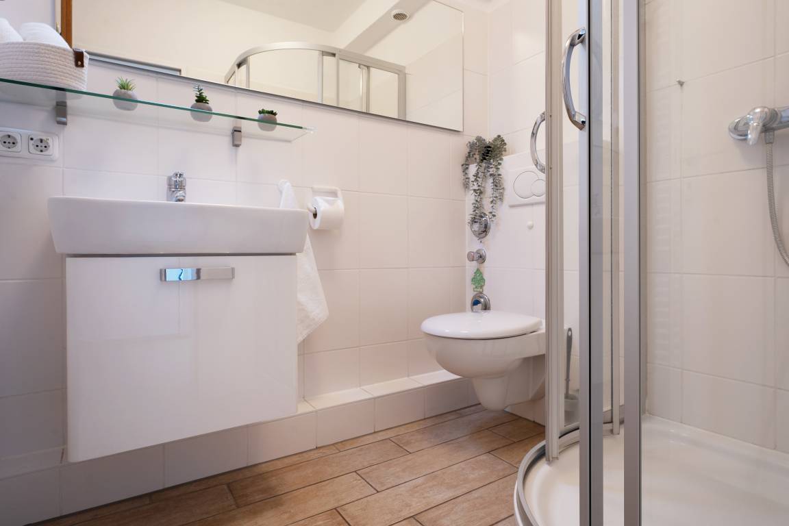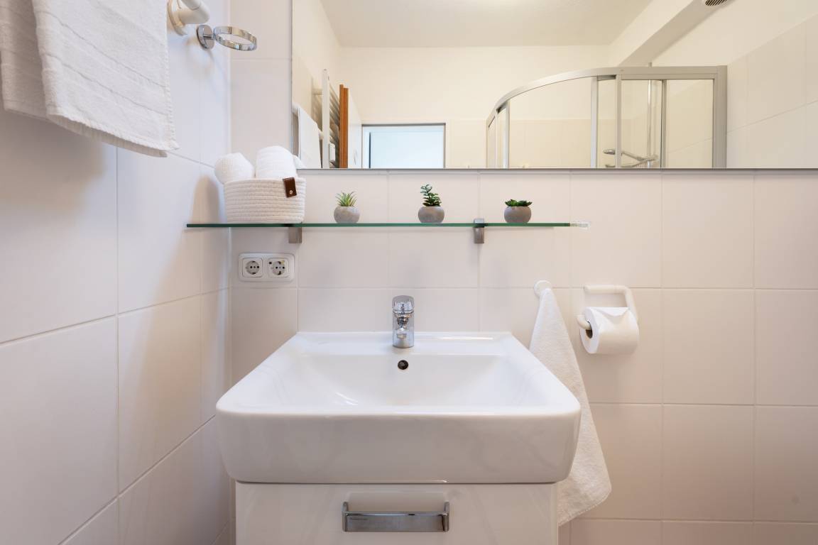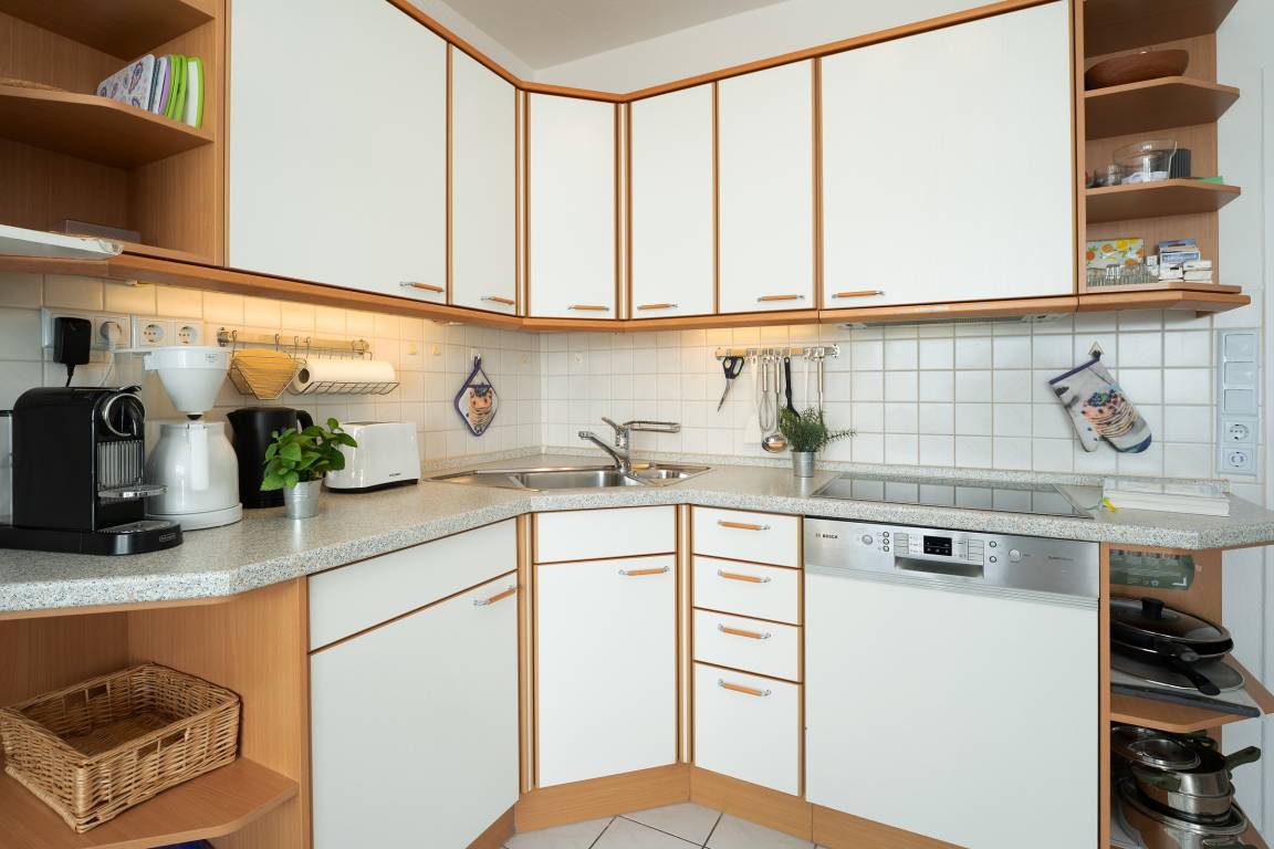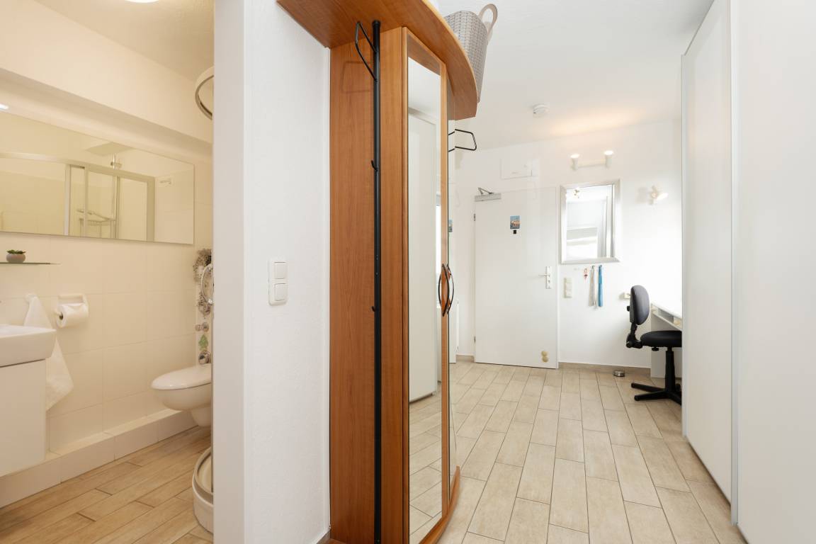 Bis zu 3 Personen können sich in dieser Wohnung mit ca. 43 m² Wohnfläche in direkter Strandnähe erholen. Die Schlafmöglichkeiten bestehen aus einem Schrankbett (140x200 cm) im Wohnbereich sowie einem weiteren Schrankbett (2x 80x200 cm) im Eingangsbereich der Wohnung. Der Wohn- und Schlafraum lässt sich mit elektrischen Rollläden verdunkeln. Für Unterhaltung sorgen ein Flachbildfernseher, ein Radio sowie sowie eine Stereoanlage für Radio, CD, USB und Card iPod. Die offene Küche ist gut ausgestattet und sorgt mit diversen Alltagshelfern für Freude beim Kochen. Der runde Esstisch lädt zu geselligen Mahlzeiten ein. Das hochwertige Badezimmer ist mit einer großzügigen Dusche, einem großem, beleuchtetem Spiegel sowie einem Waschtisch gut ausgestattet und stilvoll gestaltet. Im Flur befindet sich eine Garderobe mit geräumigem Schiebetürenschrank für Ihre Urlaubsgarderobe.