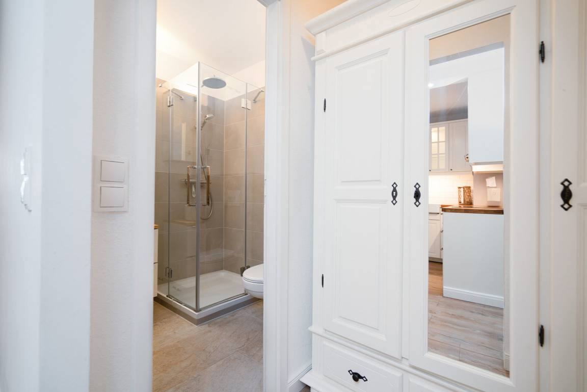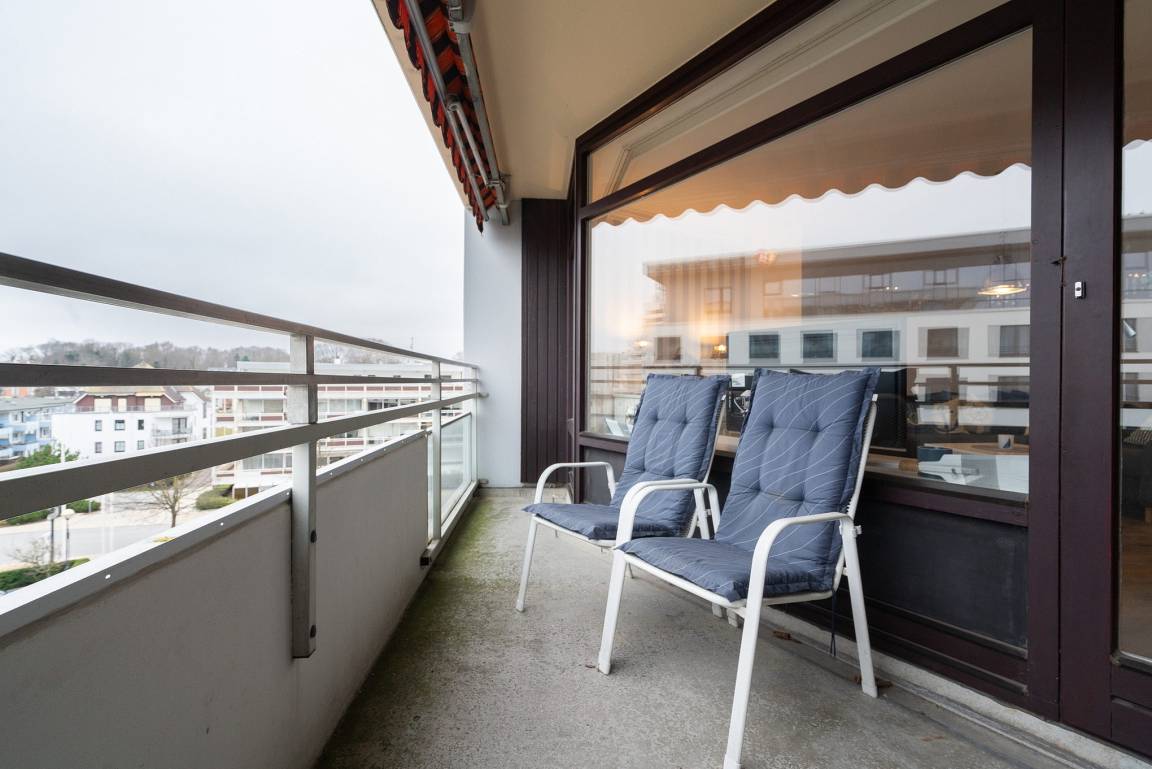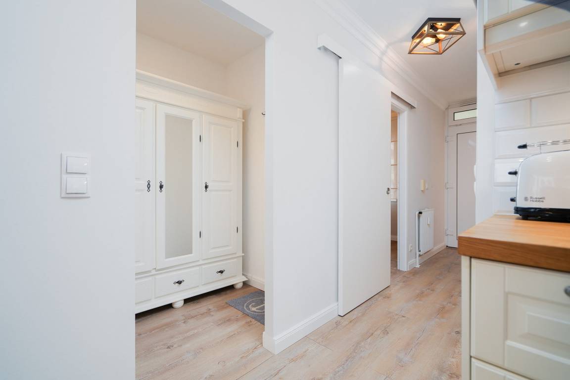 Die ansprechende und modern ausgestattete Wohnung mit seitlichem Meerblick befindet sich im 5. Stock im Grömitz-Center 1. Ein Aufzug ist in der Nähe vom Parkplatz vorhanden.