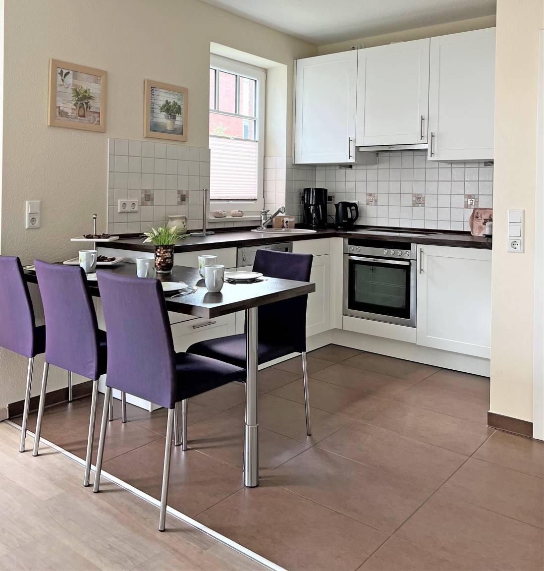 Die moderne Küche ist komplett ausgestattet mit Geschirrspüler, Mikrowelle, Cerankochfeld, Backofen, etc. und einer angrenzenden Essecke.