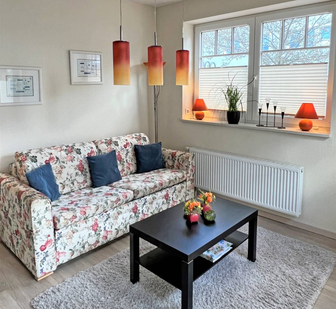 Die gesamte Wohnung ist hell und freundlich eingerichtet. Das Wohnzimmer verfügt über eine bequeme Schlafcouch sowie über einen Flachbild-TV, Stereoanlage und direktem stufenlosen Zugang zum Balkon.