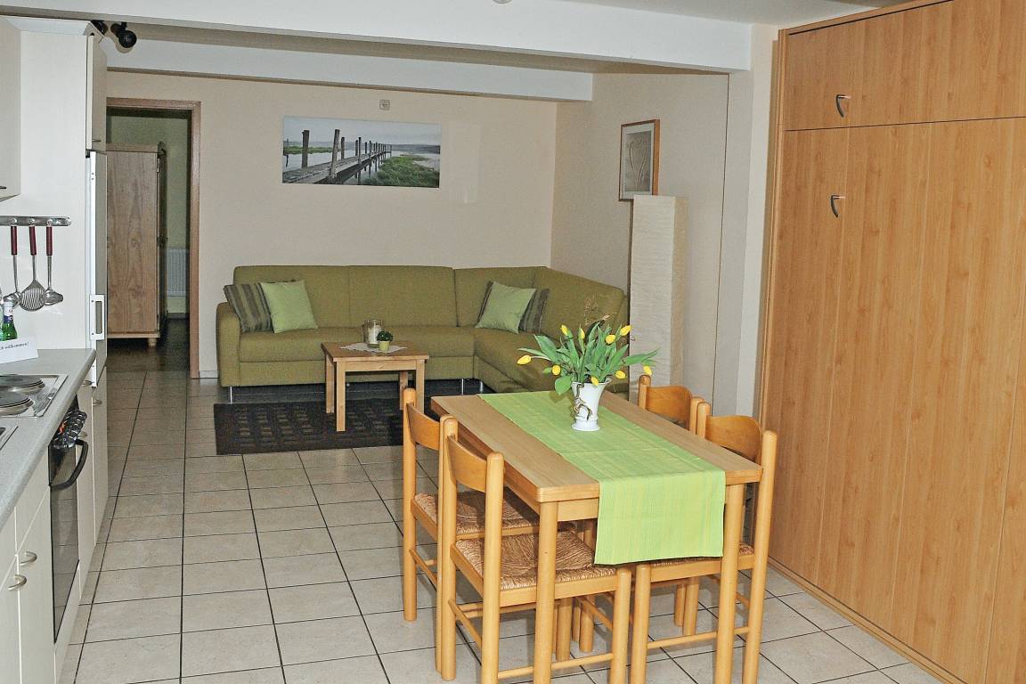 Das komfortable Schrankbett im Wohnzimmer erlaubt bis zu 6 Personen einen schönen Urlaub!