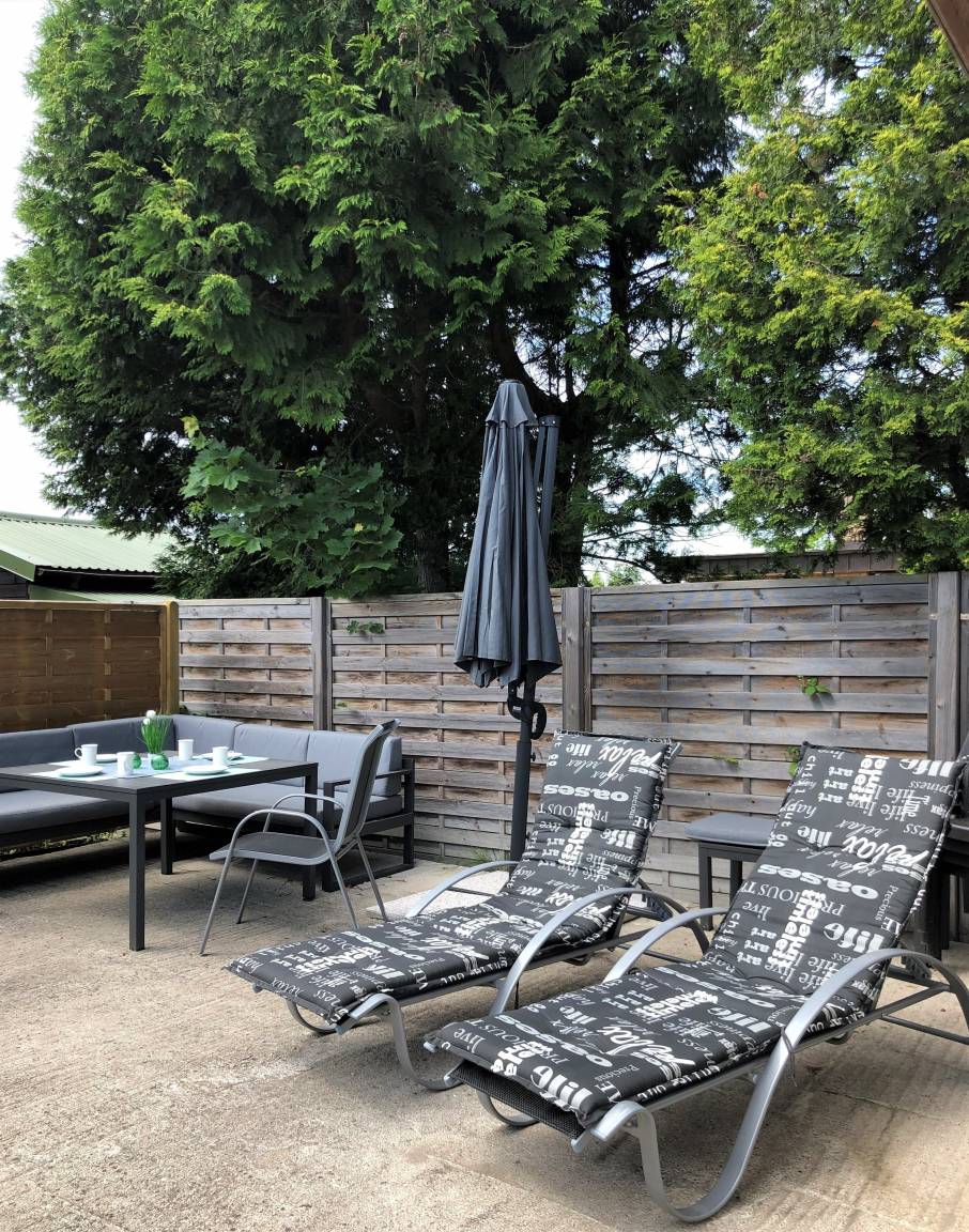 Großzügiges Grundstück mit kaum einsehbarem Garten mit Terrasse, auf dem Sie Ihren Urlaub richtig genießen können! Überdachter Stellplatz auf Grundstück vorhanden. Kostenlose Nutzung eines Gartenhäuschens zum Abstellen Ihrer Räder. Großzügiger Grillplatz. Hunde sind auf Anfrage willkommen.