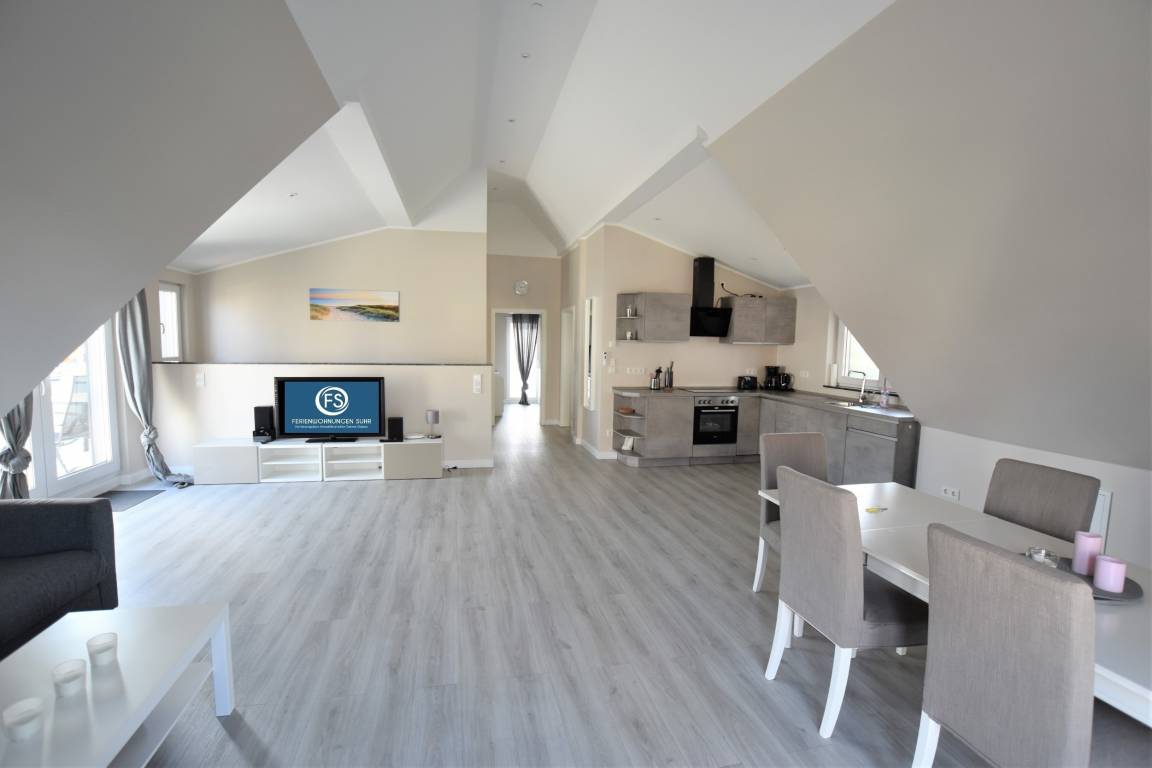 „Wir hatten sehr schöne Tage in der Ferienwohnung. Der Kontakt zum Vermietungsbüro war immer sehr freundlich. Wir hätten vielleicht noch kleine Anregungen, aber das ist sicher eine individuelle Meinung. Ein Teppich unter dem Couchtisch wäre schön, weil es doch ziemlich schallt in dem großen, hohen Raum. Eventuell eine kleine, einfache Mikrowelle und ein bisschen mehr Geschirr, dann müsste man nicht eine halb leere Geschirrspülmaschine an machen. Ich denke, im Urlaub möchte man es bequem haben und hat keine Lust ein paar Teller mit der Hand zu spülen. Der Balkon könnte vielleicht etwas schöner gestaltet werden (Fußbodenfliesen). Das hört sich nach Kritik an, ist aber wirklich keine, nur Anregungen. Alles in Allem hat es uns sehr gut gefallen und wir werden die Unterkunft und auch das Vermietungsbüro Suhr weiter empfehlen. Zum Strand läuft man keine 5 Minuten und zur Fußgängerzone sind es maximal 10 Minuten.“