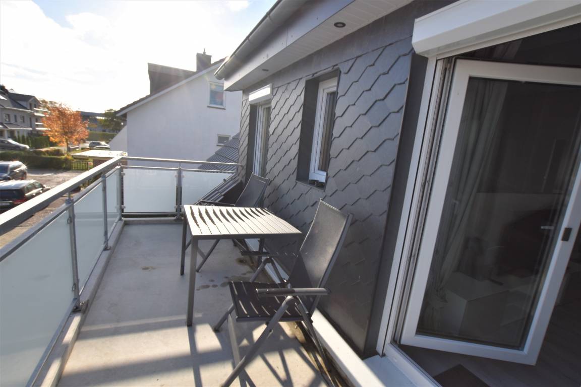 Eingangsflur. Wohnzimmer mit gemütlichem Sofabereich und TV, Esstisch mit Stühlen, offene Küche mit Wasserkocher, Geschirrspüler, Backofen, Kaffeemaschine, Toaster, einen direkten Zugang zum Ostbalkon. Schlafzimmer 1 mit einem Doppelbett (1x 180 cm x 200 cm), TV, Kleiderschrank, Kommode und Rollladen. Schlafzimmer 2 mit zwei Einzelbetten(90x200 cm) , Kleiderschrank , Kommode und Rolladen. ein Duschbad mit bodentiefer Dusch, Spiegelschrank und WC. W-LAN , ein PKW-Stellplatz vorm Haus