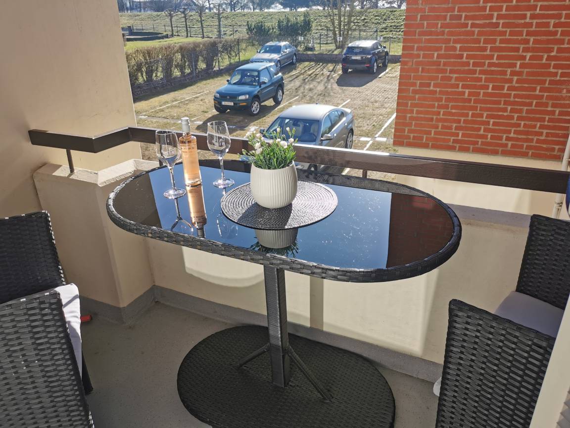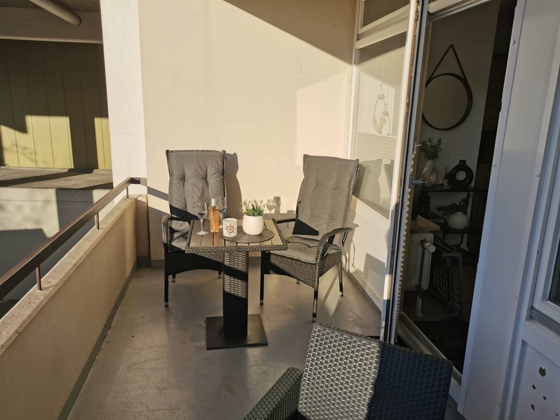 „Die Wohnung ist klein aber fein. Sie ist gemütliche eingerichtet und hat 2 Balkons mit guten Garten möbeln. Sie liegt Zentral, so dass man alles zu Fuß erreichen kann. Bis zur Promenade sind es 2 Gehminuten zu Fuß.“