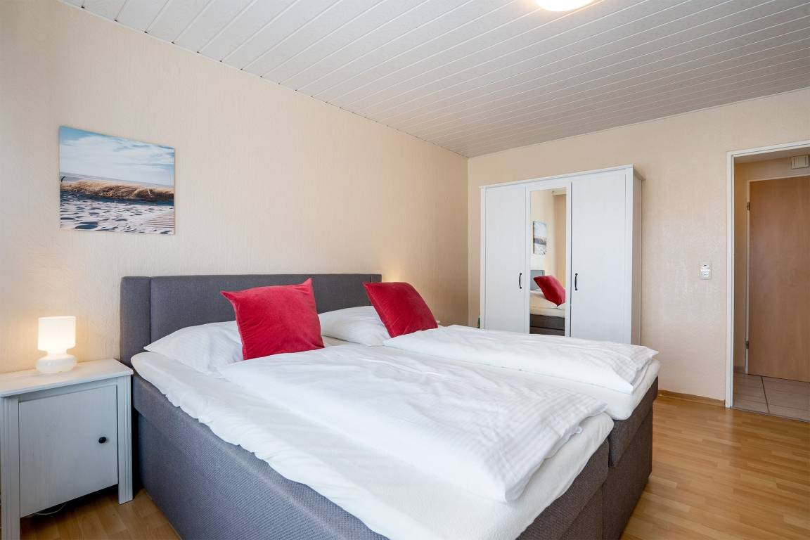 „Sehr schöne gepflegte 3 - Zimmer Wohnung mit 2 Schlafzimmern und 2 Boxspringbetten mit sehr guten Matratzen. Bad und Küche sehr gut und sehr ordentlich - extra Gäste WC. Die Wohnung befindet sich in einer ruhigen Lage. Der Strand und die Strandprominate sind ca. 200 m entfernt und der Ortskern mit allen Geschäften und Bäcker ebenfalls in ca. 200 m erreichbar. Haben uns sehr wohlgefühlt und können es nur empfehlen.“
