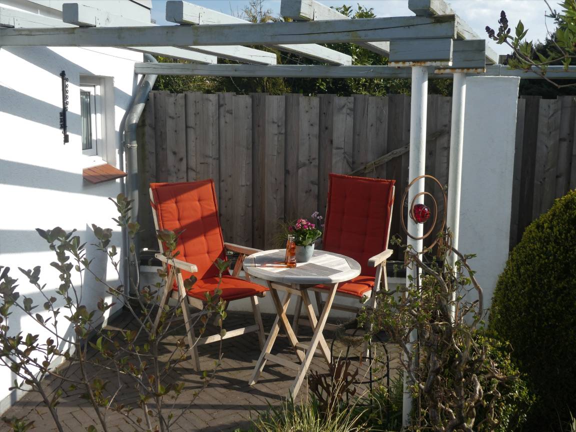 Am Haus steht Ihnen eine eigene Süd-West-Terrasse mit Sitzmöbeln zur Verfügung.