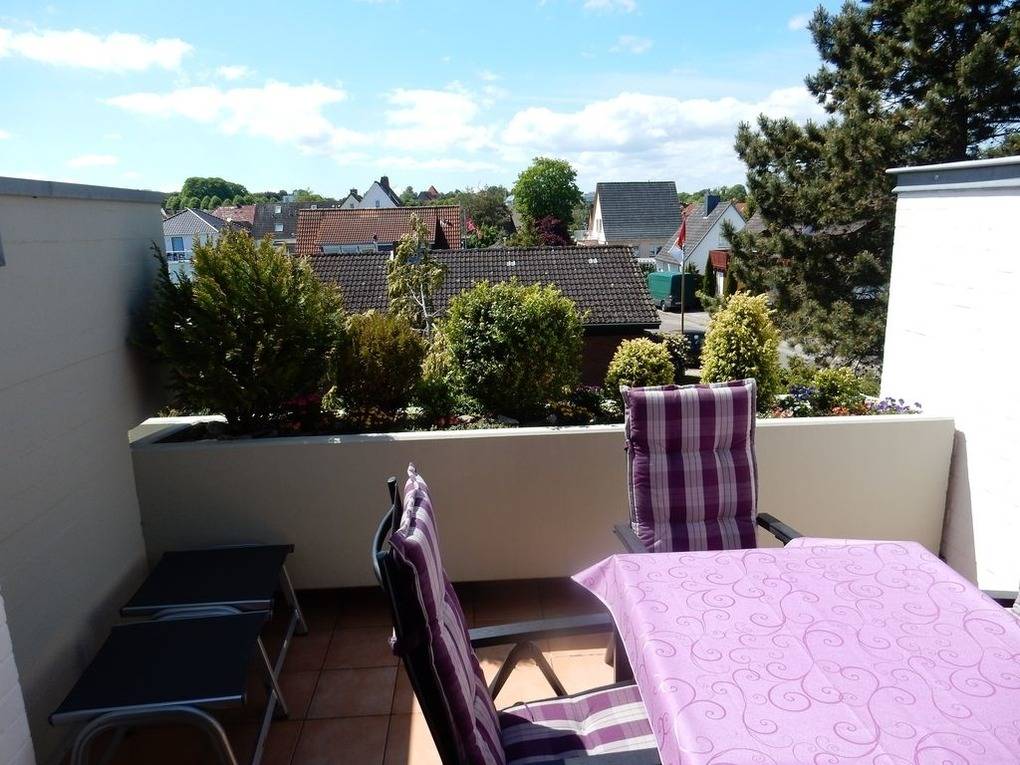 Geschmackvoll eingerichtete Ferienwohnung mit Balkon in der 2. Etage, nur 5 Gehminuten vom Strand entfernt. 2,5 Zimmer-Wohnung für bis zu 4 Personen.
