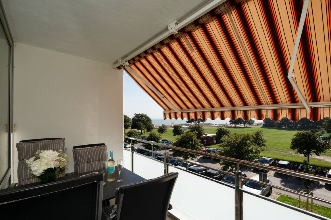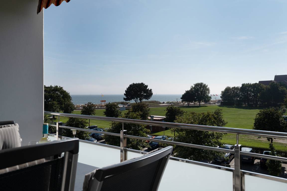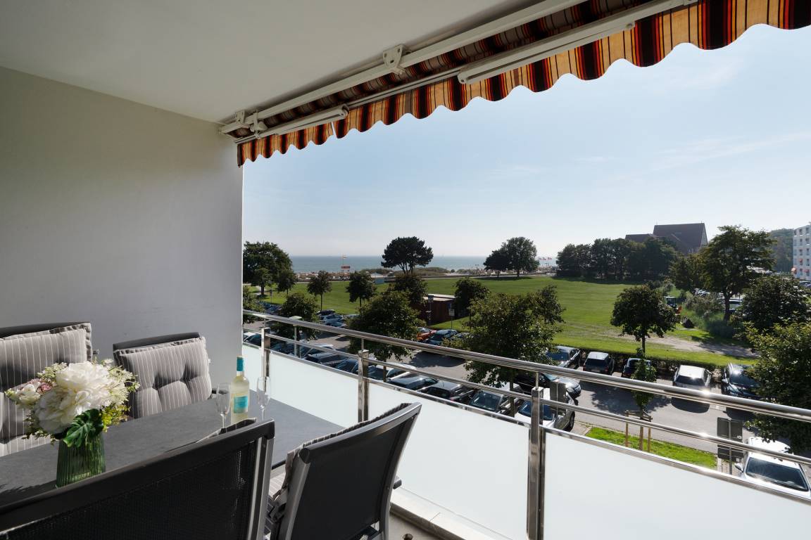 Der Wohnbereich bildet mit einem direkten Zugang zum sonnigen Balkon das Herzstück der Wohnung. Entscheiden Sie, ob Sie lieber das Frühstück mit Meerblick im Freien genießen möchten oder aber am Esstisch für 4 Personen im Wohnbereich. Hier finden Sie zusätzlich einen gemütlichen TV-Bereich mit Sofaecke sowie ordentlich Stauraum in den großen Schränken. Kostenfreies W-LAN steht Ihnen selbstverständlich während Ihres Aufenthaltes zur Verfügung.