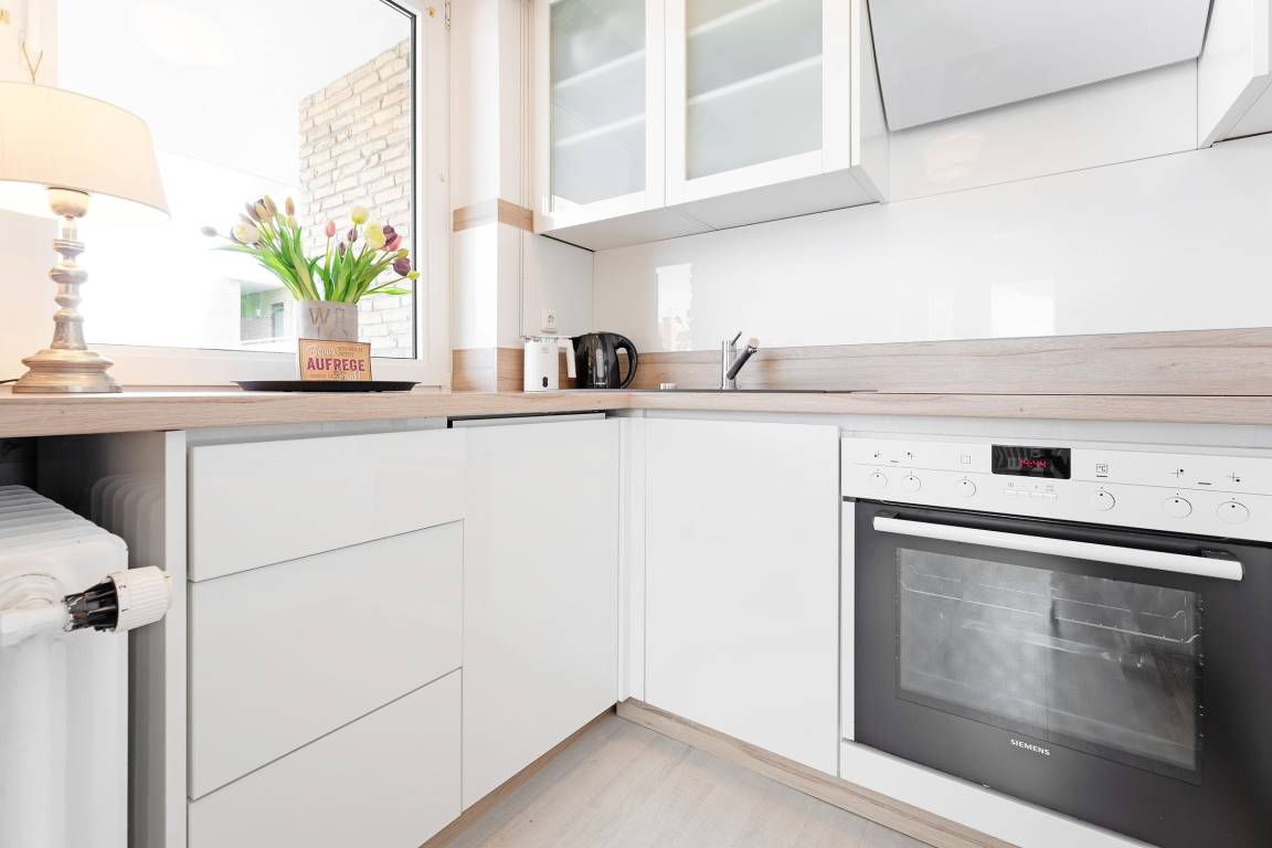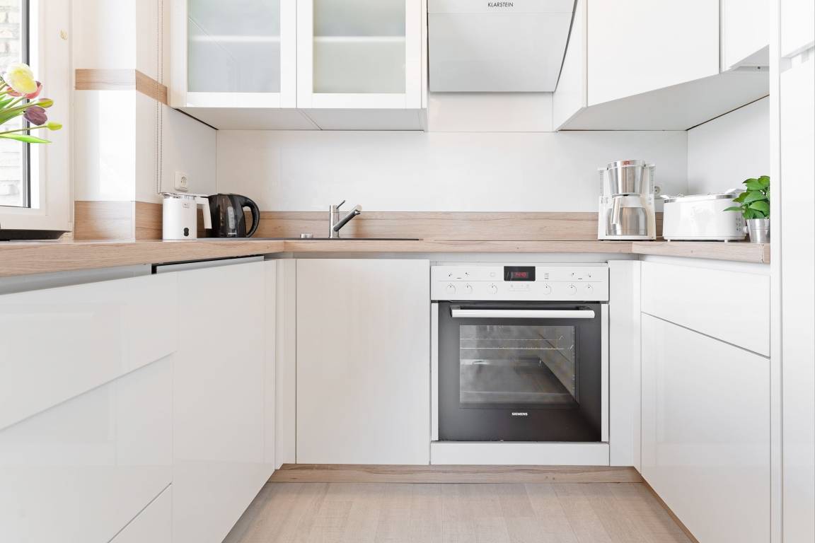 In der ersten Etage befindet sich das Herzstück der Wohnung: das offen gestaltete Wohn-/Esszimmer mit gemütlichem Interieur im zeitlosen Skandi-Chic. Hier laden ein bequemes Ecksofa und ein Flatscreen-TV bei jeder Witterung zu lauschigen Abenden ein, der Esstisch bietet Raum für gesellige Runden und die großzügige Fensterfront ermöglicht einen traumhaften Ausblick. Auf Ihrem großen, möblierten Balkon genießen Sie zahlreiche Sonnenstunden und beobachten das bunte Treiben am Grömitzer Yachthafen. Die separate Küche ist modern und hochwertig ausgestattet. Auf dieser Etage befindet sich auch das erste der beiden Schlafzimmer, ausgestattet mit weißem Holz-Etagenbett (Matratzen je 100x200 cm), sowie geräumigem Kleiderschrank. Das Badezimmer verfügt neben einer Dusche und WC über einen kombinierten Wasch-Trockner.