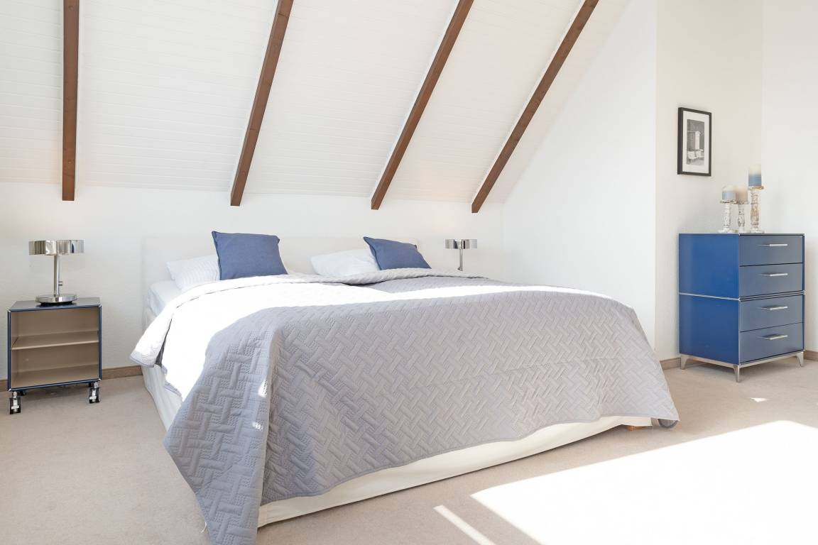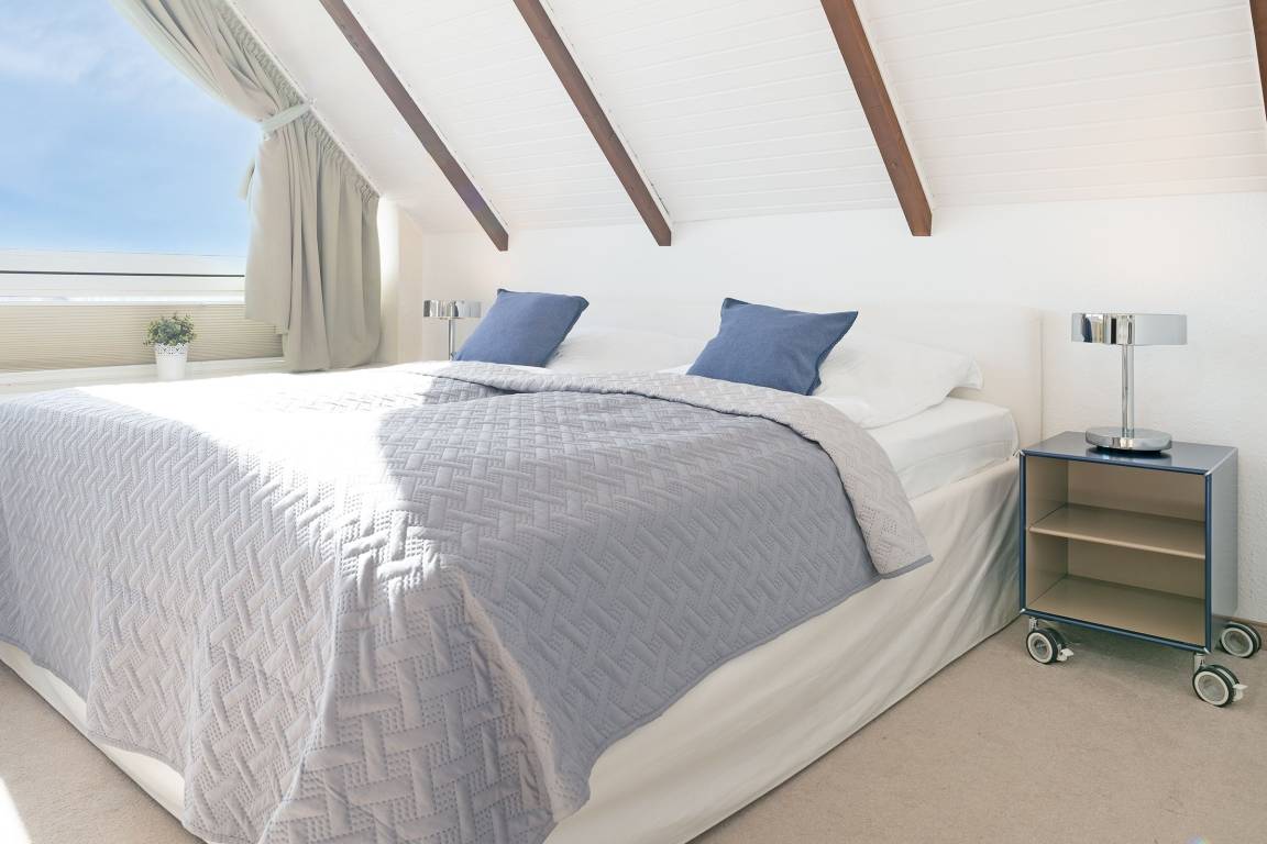 Über eine geschwungene Wendeltreppe gelangen Sie vom Wohn-/Essbereich in die obere Etage, hier befinden sich ein zweiter lichtdurchfluteter Wohnraum mit komfortabler Wohnlandschaft. Zudem gibt es hier ein weiteres Badezimmer mit Dusche, WC und Handtuchheizung. Das zweite geräumige Schlafzimmer mit seinen großen Fensterflächen bietet einen zauberhaften Ostseeblick, ein gemütliches Doppelbett (2x 90x200 cm) für erholsamen Schlaf und einen zusätzlichen Flat-TV. Hier erwartet Sie zudem ein wohl einzigartiges Highlight: eine freistehende Badewanne!