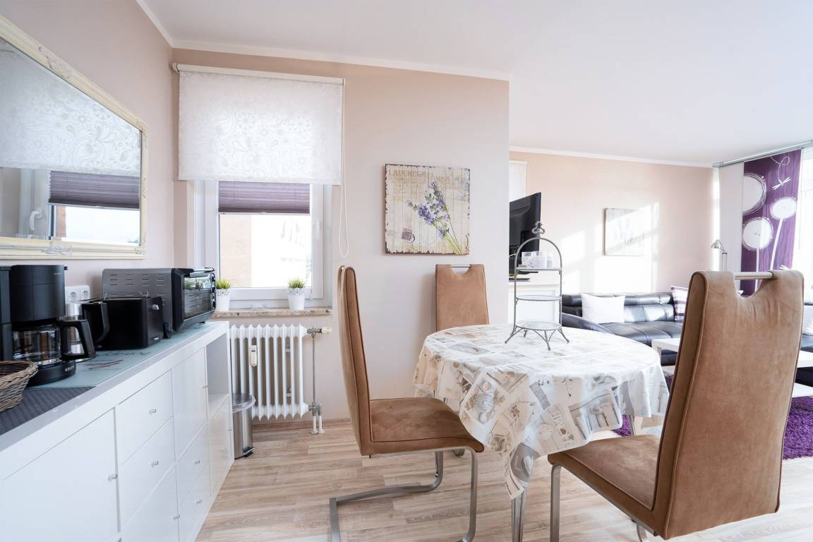 Ihre 1-Zimmer-Ferienwohnung für 2 Personen mit 38 m² Wohnfläche ist modern und geschmackvoll eingerichtet. Sie liegt in der 4. Etage im Haus Villa am Meer und ist bequem mit dem Fahrstuhl erreichbar. Hier fühlen Sie sich mit Sicherheit wohl.