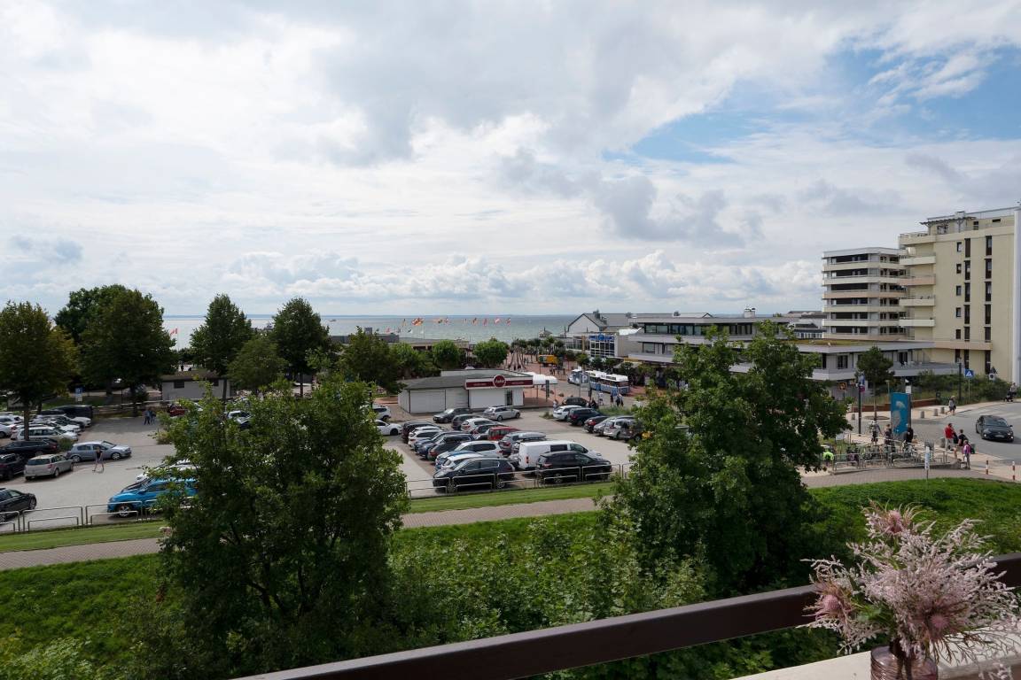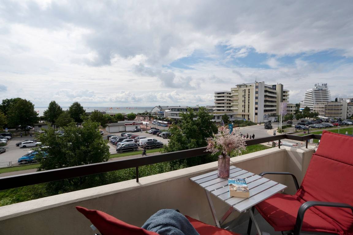 Diese 2-Zimmer-Ferienwohnung liegt in der 4. Etage und ist für bis zu 2 Personen ausgelegt. Vom Balkon aus mit Markise genießen Sie direkten Meerblick. Diesen Ausblick auf die Ostsee im Sommer oder auch im Winter werden Sie nie wieder vergessen! Eine voll ausgestattete Küche mit Spülmaschine und ein modernes Duschbad erwarten Sie. Für Unterhaltung sorgt ein großer, 46 Zoll LED TV. Im separaten Schlafzimmer mit Doppelbett (2x 90x200 cm) sind erholsame Nächte garantiert. Für den täglichen Kaffeegenuss ist eine Senseo Kaffeemaschine vorhanden.