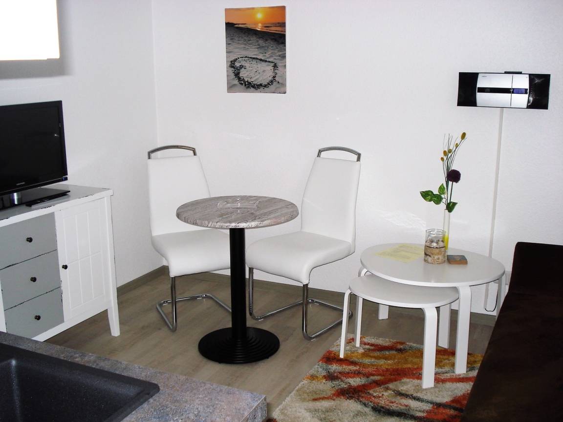 Gemütlich und modern eingerichtete 2-Zimmer-Wohnung mit Pantryküche direkt am Sonnenkreisel. Den Strandbereich mit der Kurpromenade erreichen Sie fußläufig in 15 Minuten, Einkaufsmöglichkeiten befinden sich nur einen Katzensprung entfernt. W-LAN ist vorhanden.