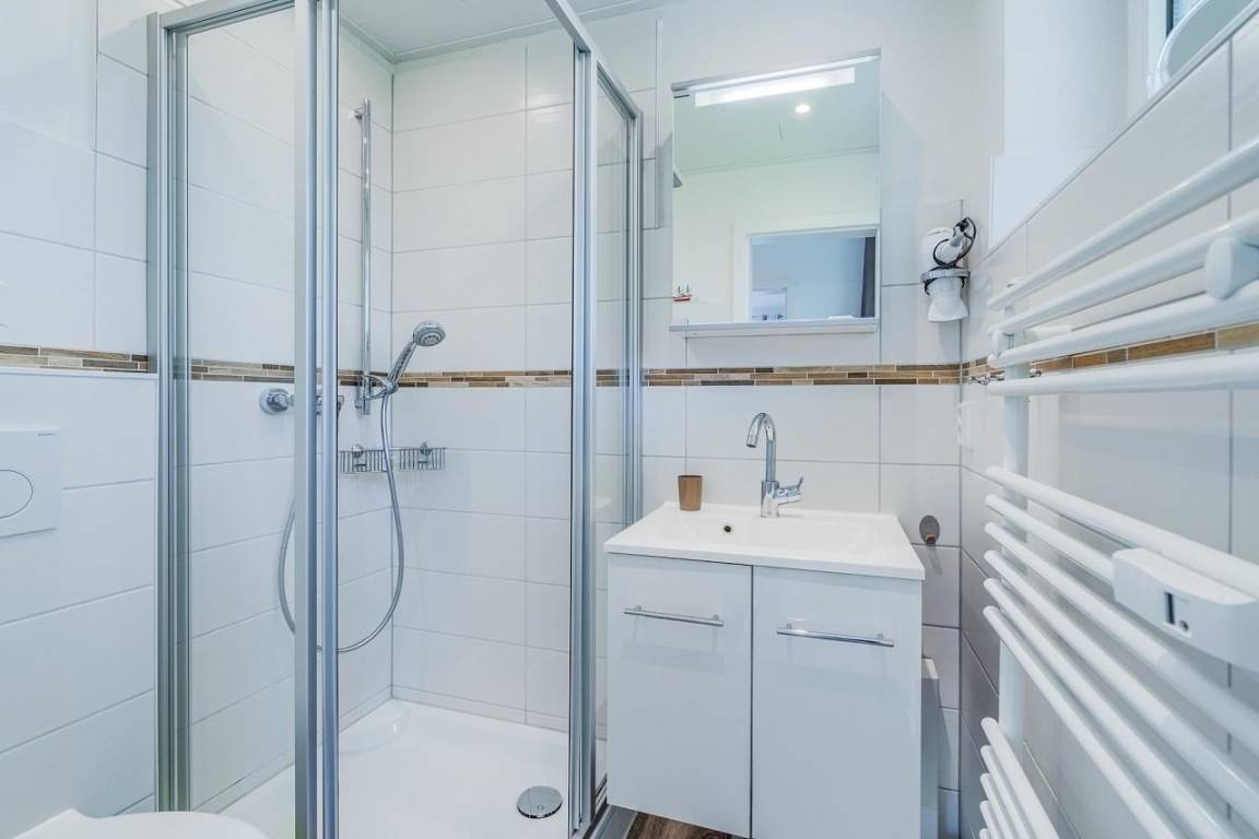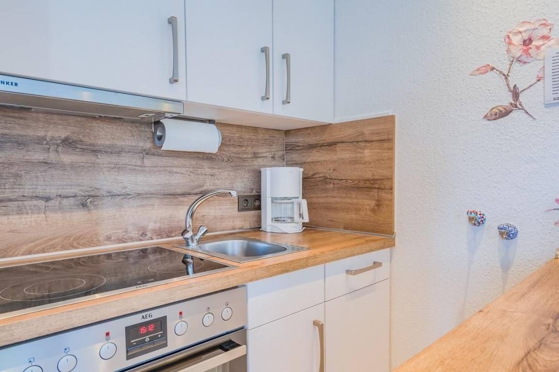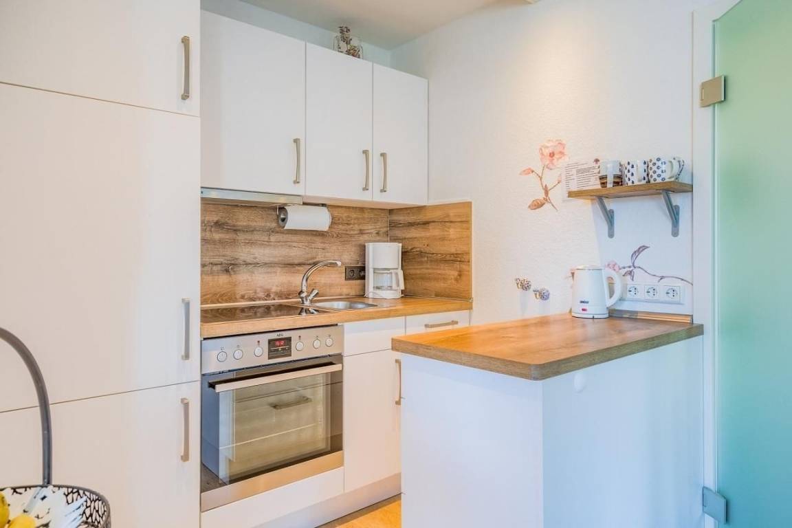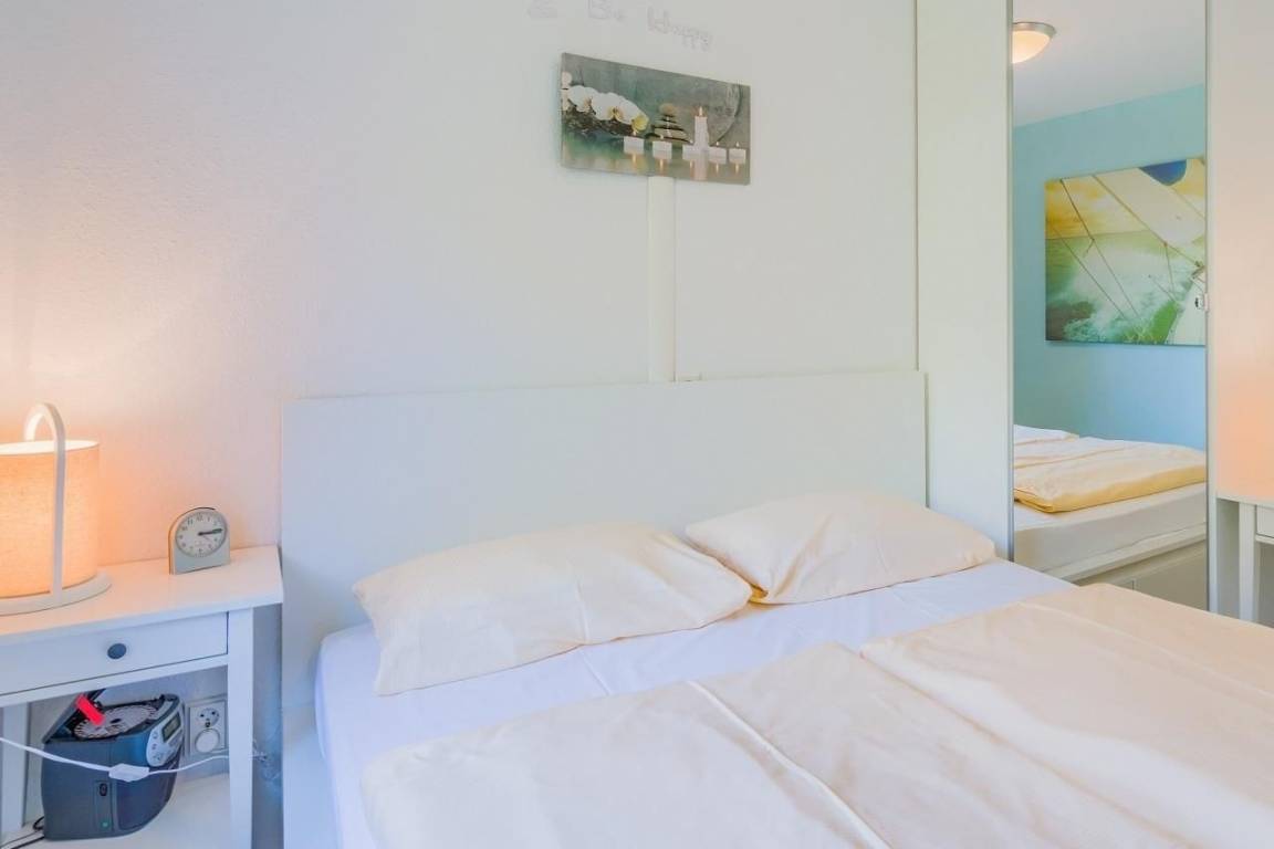 Auf ca. 44 m² wurde hier liebevoll bis ins Detail an alles gedacht! Die Wohnung hat ein Schlafzimmer mit Doppelbett (2x 80x200 cm) und Kleiderschrank und noch ein weiteres Schlafzimmer mit Einzelbett (90x200 cm), Kleiderschrank, Schreibtisch und TV! Das Badezimmer ist modern und hell eingerichtet. Hier gibt es eine Dusche, eine Handtuchheizung, einen Föhn, ein Waschtisch mit Spiegel und selbstverständlich ein WC. Vom Flur aus gelangen Sie nicht nur in das 1. Schlafzimmer und das Duschbad, sondern auch in eine kleine Abstellnische, worin Sie Ihre Garderobe lagern können. Vorbei an der Garderobe geht es ins den geschmackvoll eingerichteten Wohn-/Essbereich der Wohnung. Gleich rechts befindet sich die moderne Einbauküche mit Geschirrspüler, Mikrowelle, Kühlschrank, Backofen und Herd mit Ceranfeld. Linkerhand lädt ein großzügiges 3-Sitzer-Sofa mit komfortabler Récamiere zum Entspannen ein. Von hier aus haben Sie einen einwandfreien Blick auf das großzügige LED TV-Gerät. In Richtung Balkon finden Sie eine Sitzmöglichkeit zum gemeinsamen Beisammensitzen und Essen. Auf dem möblierten Balkon können Sie die Morgensonne genießen.