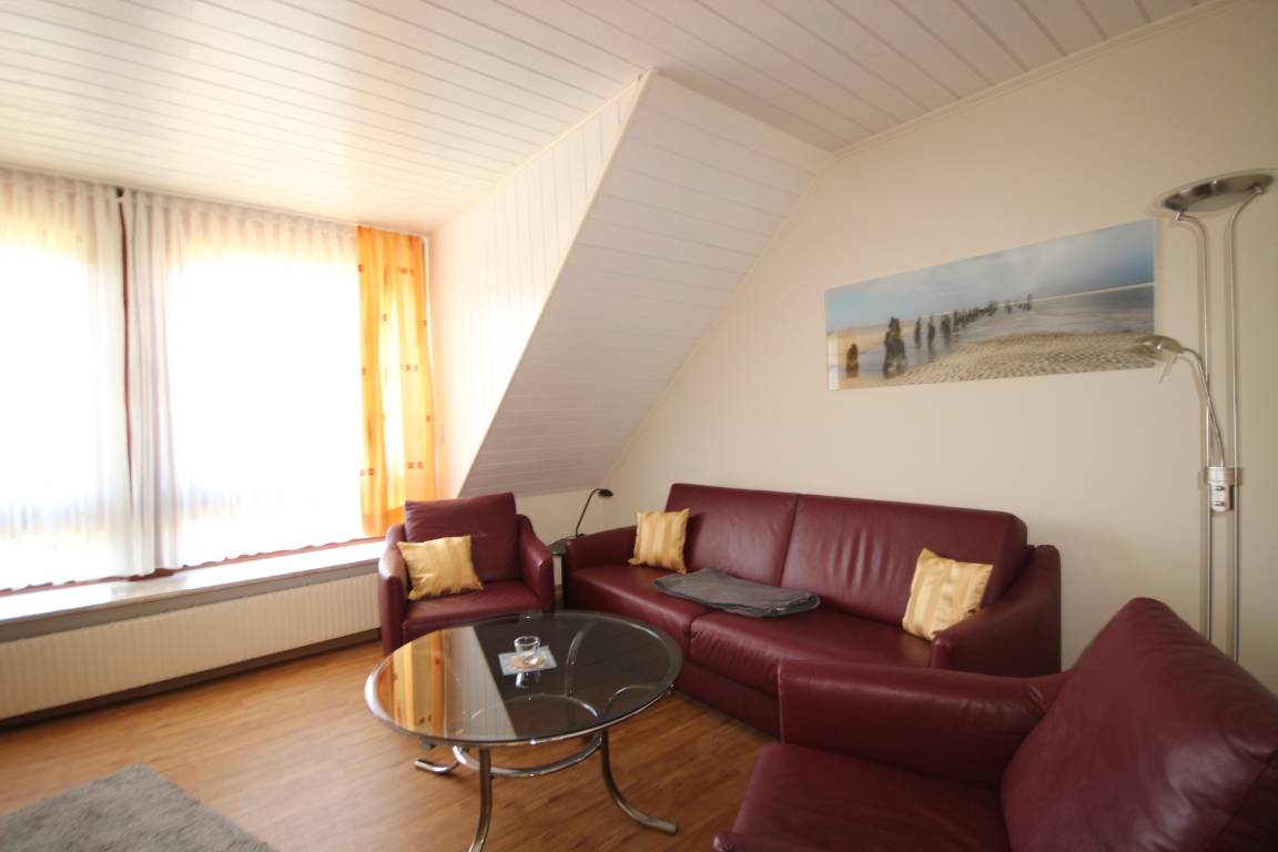 Das geschmackvolle Wohn-/Esszimmer verfügt über eine gemütliche Couch, TV, CD-Radio und Essplatz.
