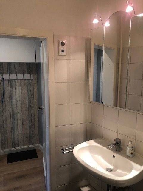 Im elegant gefliesten Badezimmer erwartet Sie eine Runddusche, WC, Spiegelschrank, Waschbecken und ein Badheizkörper. Sämtliche Räume sind mit hochwertigem Vinyl-Boden ausgelegt.