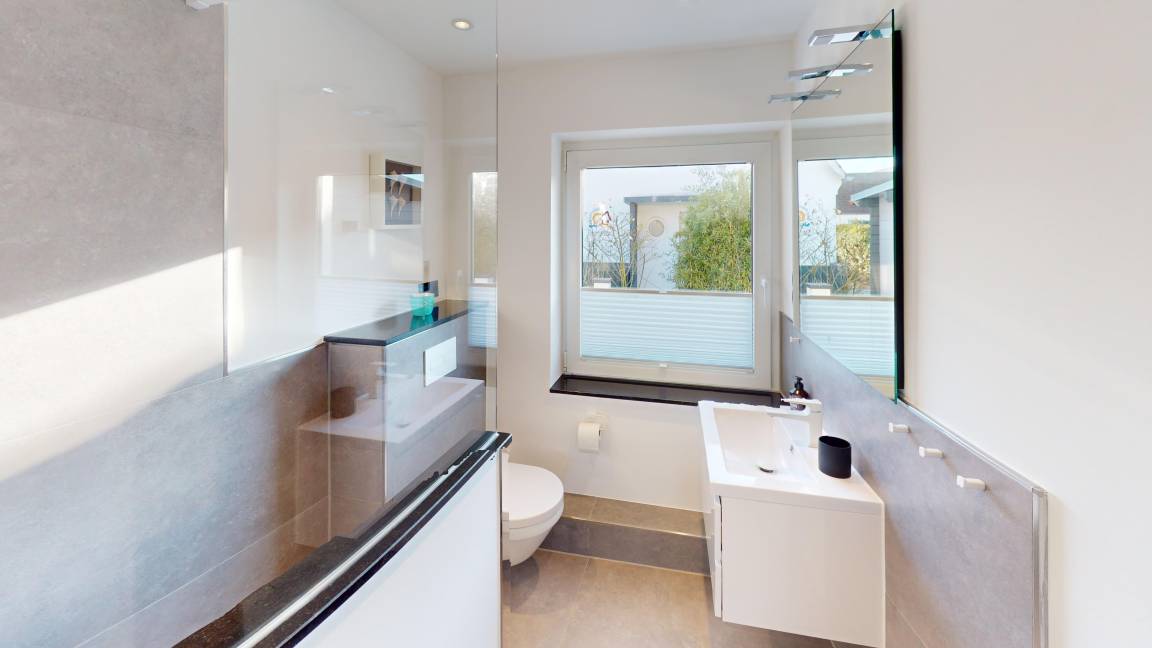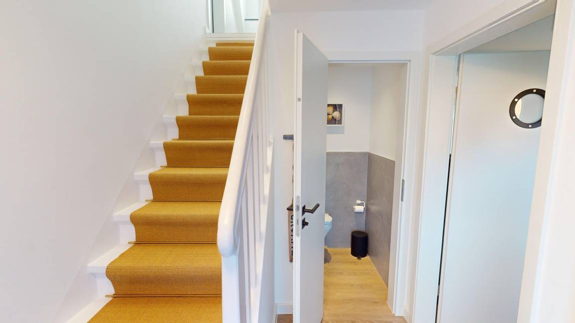 Die modern eingerichtete Wohnung erstreckt sich über das Erdgeschoss und bietet durch die interne Treppe im Haus eine Verbindung in den 1. Stock.