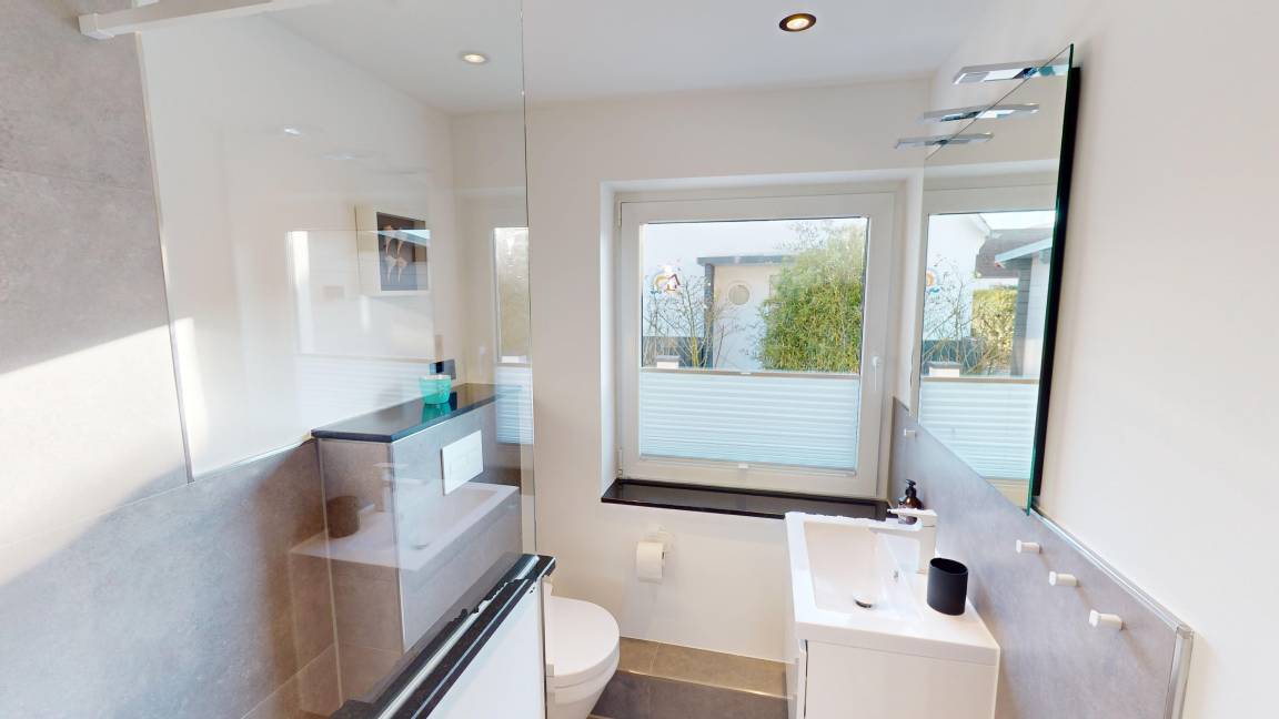2 Badezimmer bieten zusätzlichen Komfort. Der helle und modern eingerichtete Wohn- und Essbereich bildet den Mittelpunkt der Wohnung und lädt zu gemeinsamen Stunden ein.