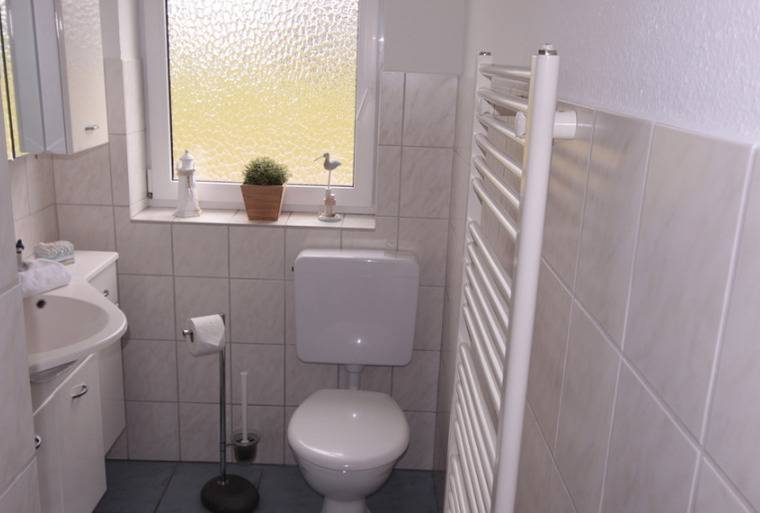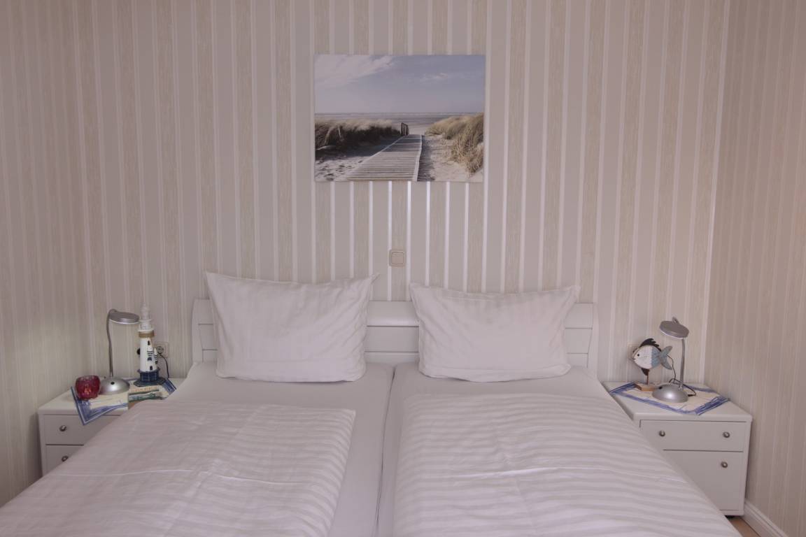 Moderne Ferienwohnung direkt am Deich (100 m zum Hauptbadestrand). Ein Schlafzimmer mit Doppelbett in Komforthöhe (je 90 x 200 cm). Wohnraum mit Küchenzeile, Flachbildschirm-TV, Couch und Sessel, Stereoanlage. Küchenzeile mit Cerankochfeld, Geschirrspüler, Mikrowelle, Toaster, Wasserkocher. Badezimmer mit Dusche und großem Spiegelschrank.