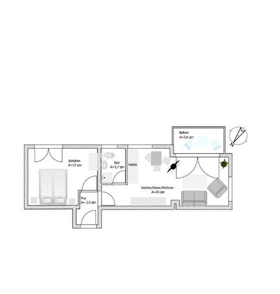 50 m² Ferienwohnung ∙ 1 Schlafzimmer ∙ 2 Gäste