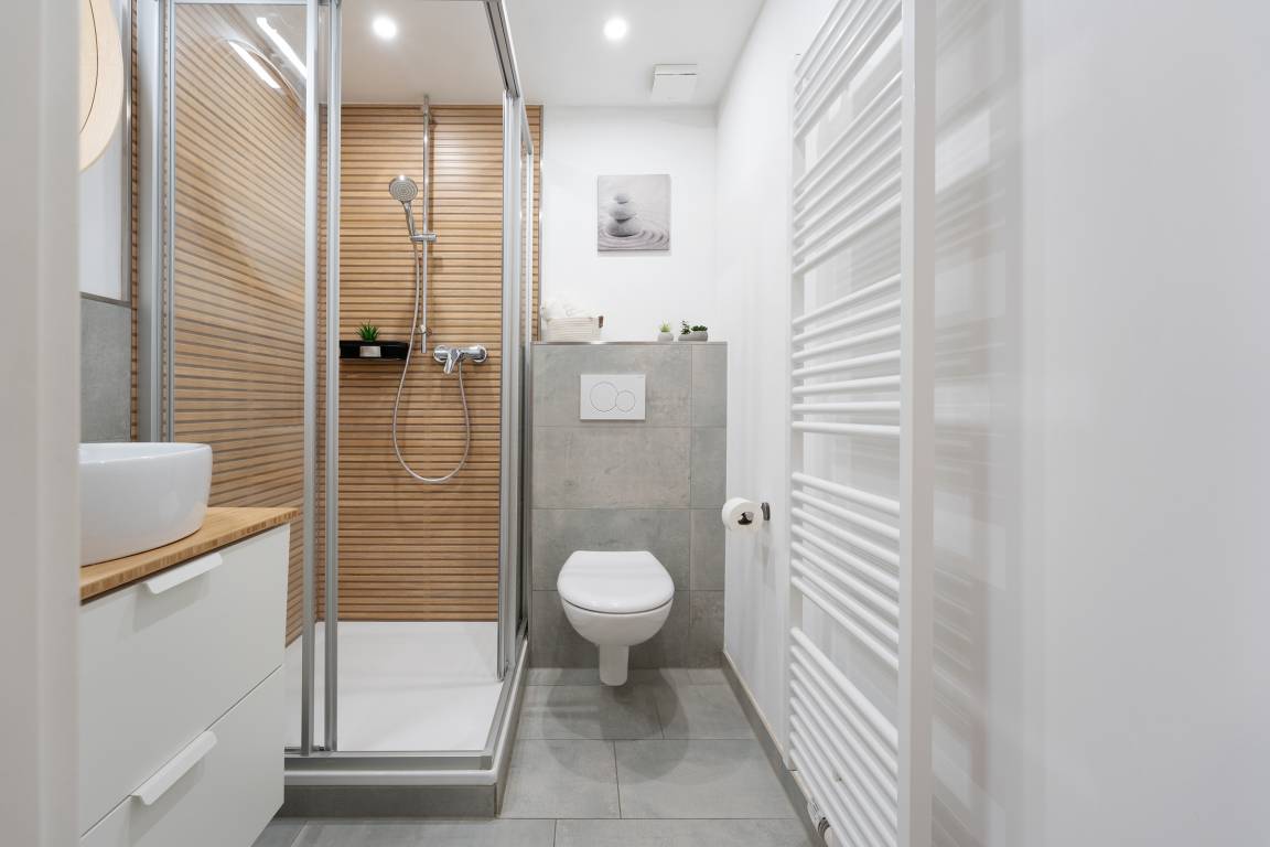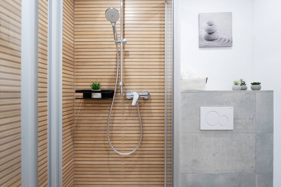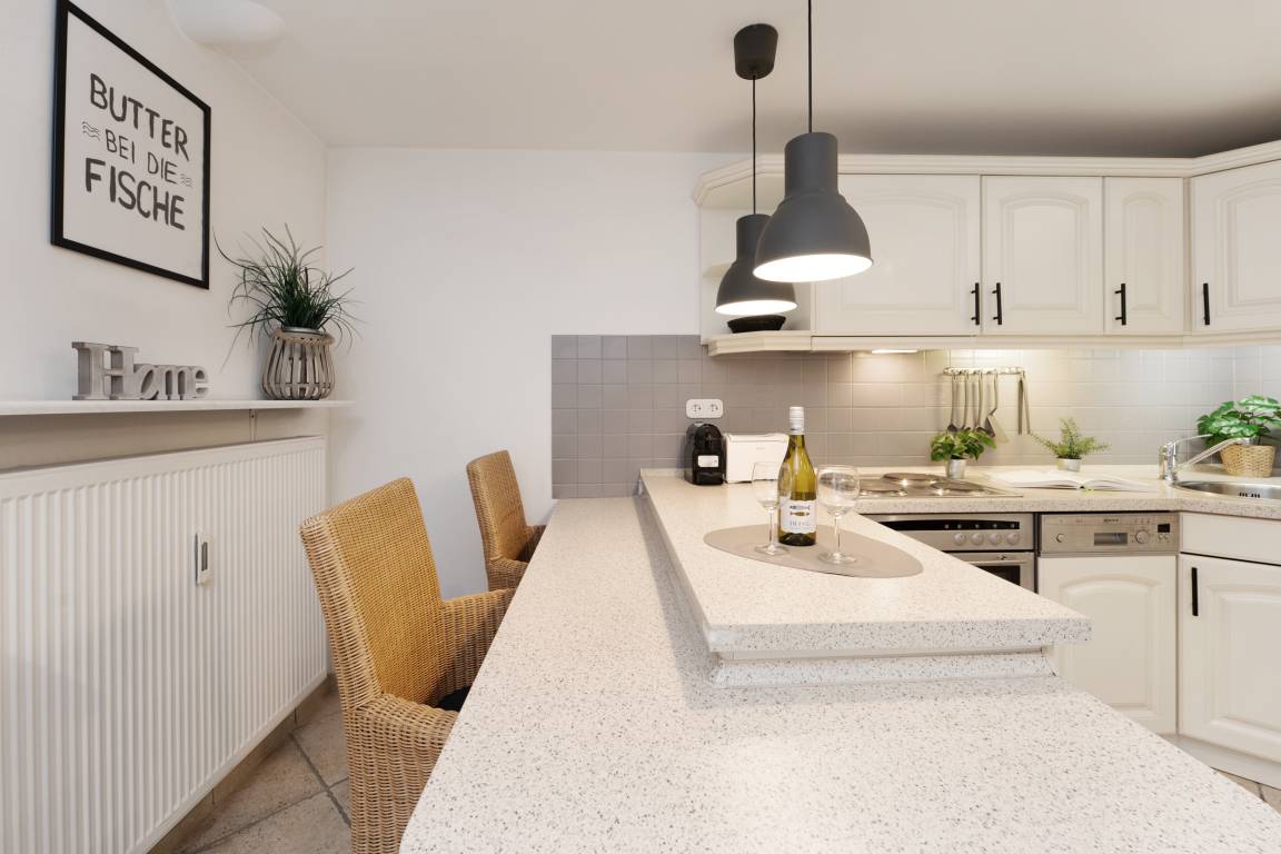 Die moderne Küchenzeile bietet alles, was Sie zum Kochen benötigen: Backofen, Geschirrspüler, Kochfeld mit vier Platten, Kühlschrank mit Gefrierfach, Kaffeemaschine, Kapselmaschine, Wasserkocher und Toaster. Der angrenzende Essbereich lädt zu gemeinsamen Mahlzeiten ein. Das separate Schlafzimmer sorgt für erholsame Nächte. Das Bad ist mit Dusche sowie WC komfortabel ausgestattet.