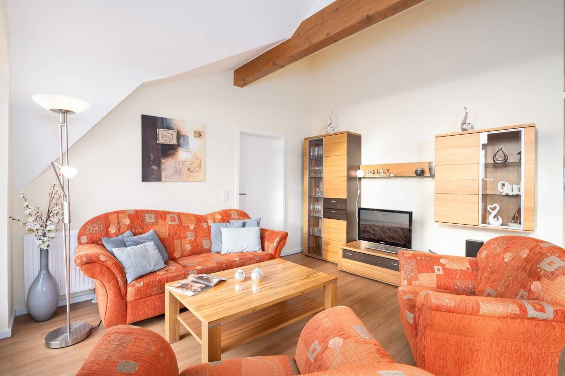 Neben einer gemütlichen Einrichtung überzeugt das Urlaubsdomizil durch einen großzügigen, möblierten Südbalkon. Das helle Wohnzimmer empfängt Sie mit einer gemütlichen Couchecke zum Entspannen. Der angrenzende Essbereich und die gut ausgestattete Küche bieten ausreichend Platz für gesellige Kochabende. Die beiden Schlafräume verfügen über jeweils ein Doppelbett (je 2x 90x200 cm) und einen großen Kleiderschrank für Ihre Urlaubsgarderobe. Zudem gibt es in einem der Schlafzimmer einen zusätzlichen Fernseher. In beiden Schlafzimmern kann man die Fenster mit Rollos verdunkeln für einen ungestörten Schlaf. Das geräumige Badezimmer verfügt über eine große, bodengleiche Dusche, ein WC und ein Waschbecken.
