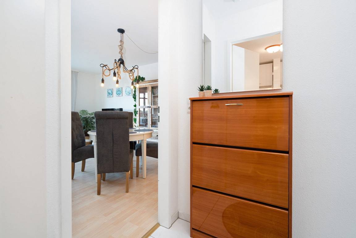 Kleiner Balkon (2,65m²) in nord-östliche Richtung, kostenloses W-Lan, PKW-Stellplatz, Waschmaschine und Trockner gegen Gebühr im Haus.