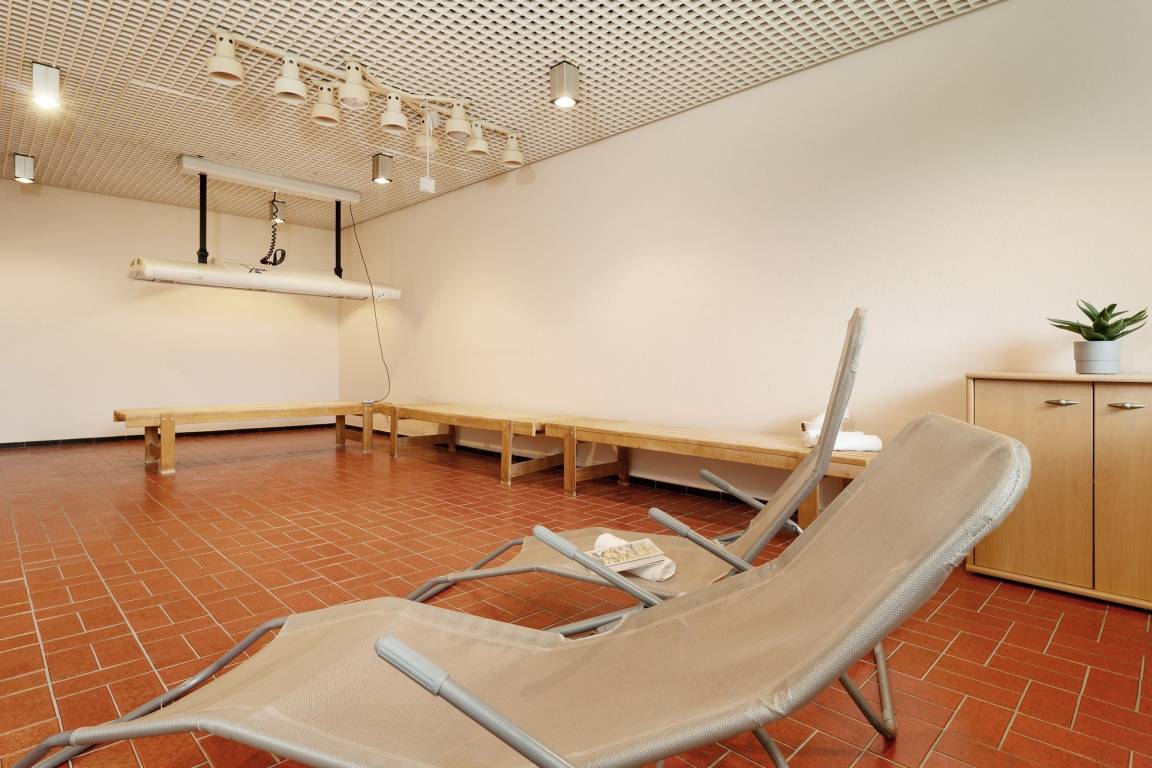Für Ihr Fahrzeug ist ein PKW-Außenstellplatz reserviert. Eine Waschmaschine sowie ein Trockner können im Gemeinschaftswaschkeller genutzt werden. Ebenso sind im Keller eine Sauna (gegen Gebühr), eine Tischtennisplatte und ein Fahrradabstellraum zur gemeinschaftlichen Nutzung für die Gäste der Appartementanlage verfügbar.