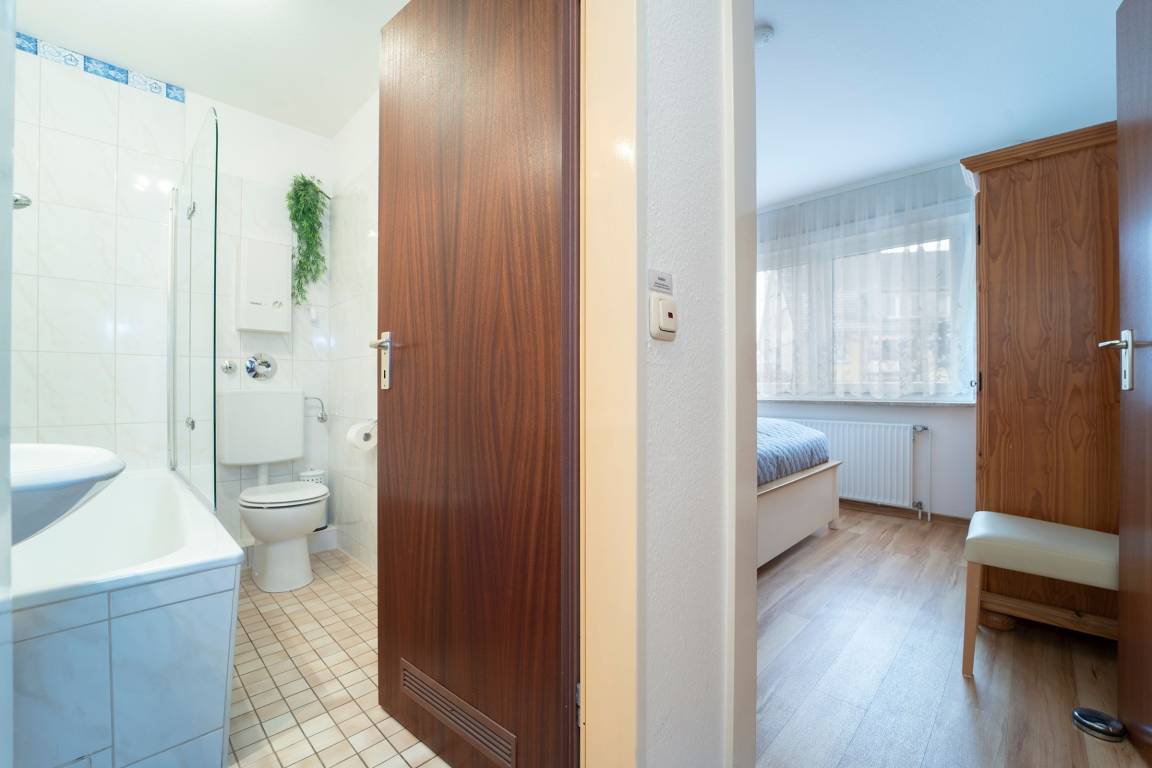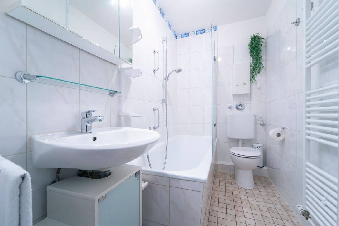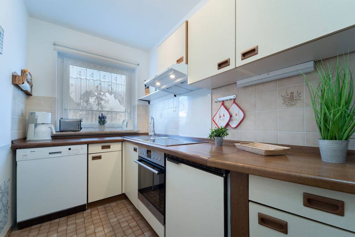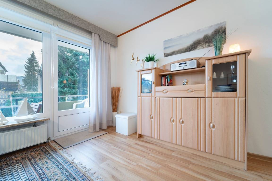 Das großzügige Wohnzimmer mit Flat-TV und Blu-Ray-Player sowie direkt angrenzendem Balkon liegt ruhig an einem Fußweg. In der voll ausgestatteten Küche finden Sie alles, was Sie für die Zubereitung von Mahlzeiten benötigen. Für die Nachtruhe stehen Ihnen ein Schlafzimmer mit Doppelbett (2x 90x200 cm) sowie ein Schlafzimmer mit Einzelbett, unter dem Sie noch ein weiteres Bett ausziehen können (je 90x200 cm) zur Verfügung. Die geschmackvolle Einrichtung der Wohnung lässt keine Wünsche offen.
