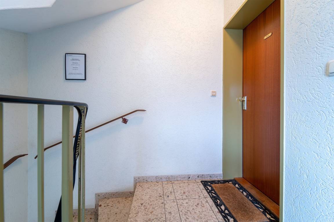 Ein PKW-Stellplatz in einer abschließbaren Garage direkt am Haus (Durchfahrthöhe: 1,95 m, Durchfahrbreite: 2,05 m) gehört ebenfalls dazu sowie wie ein allgemein zugänglicher, abschließbarer Fahrradkeller und eine Waschküche mit Waschmaschine und Trockner.