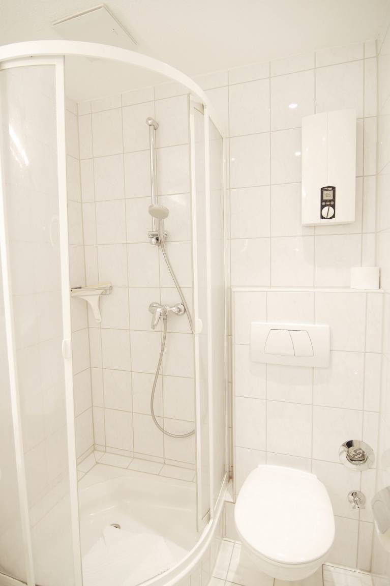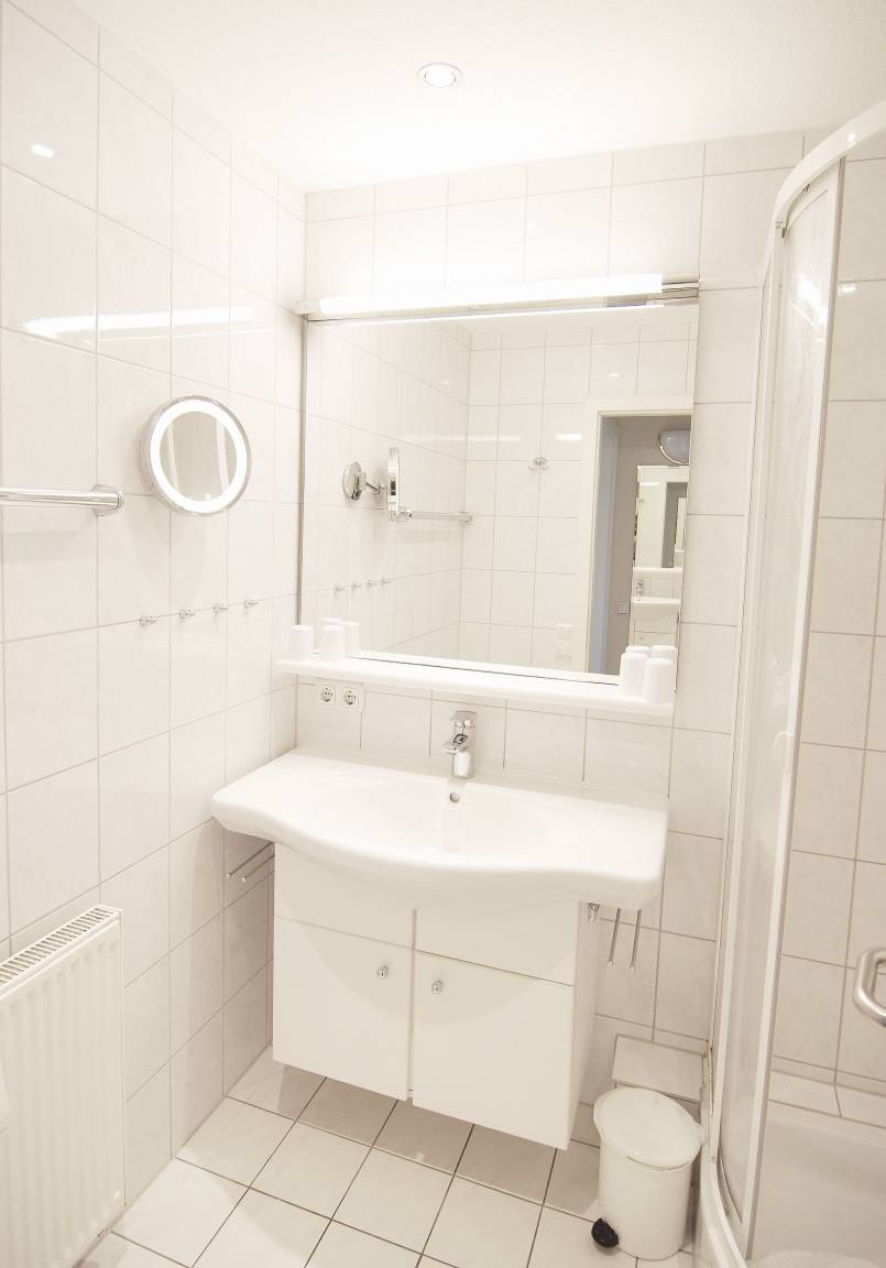 Das Duschbad fällt durch seine vielen Ablageflächen positiv auf.