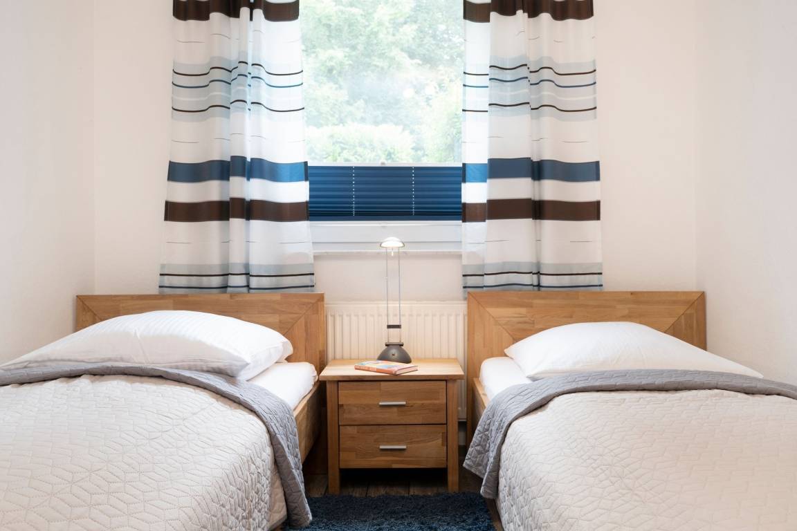 Schlafzimmer 2: 2 Einzelbetten (2x 90x200 cm), Verdunkelungsmöglichkeit (Plissee)