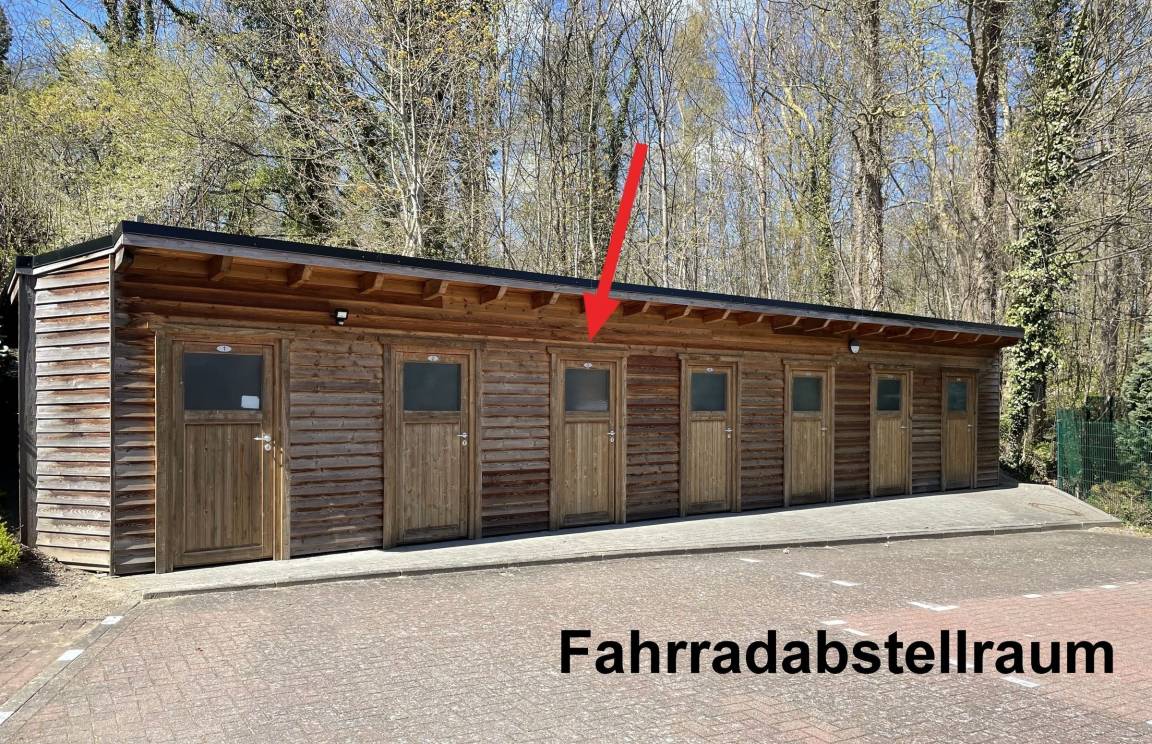 Im abschließbaren Fahrradschuppen können Sie Ihre Fahrräder sicher unterstellen und auch Ihre E-Bikes laden.