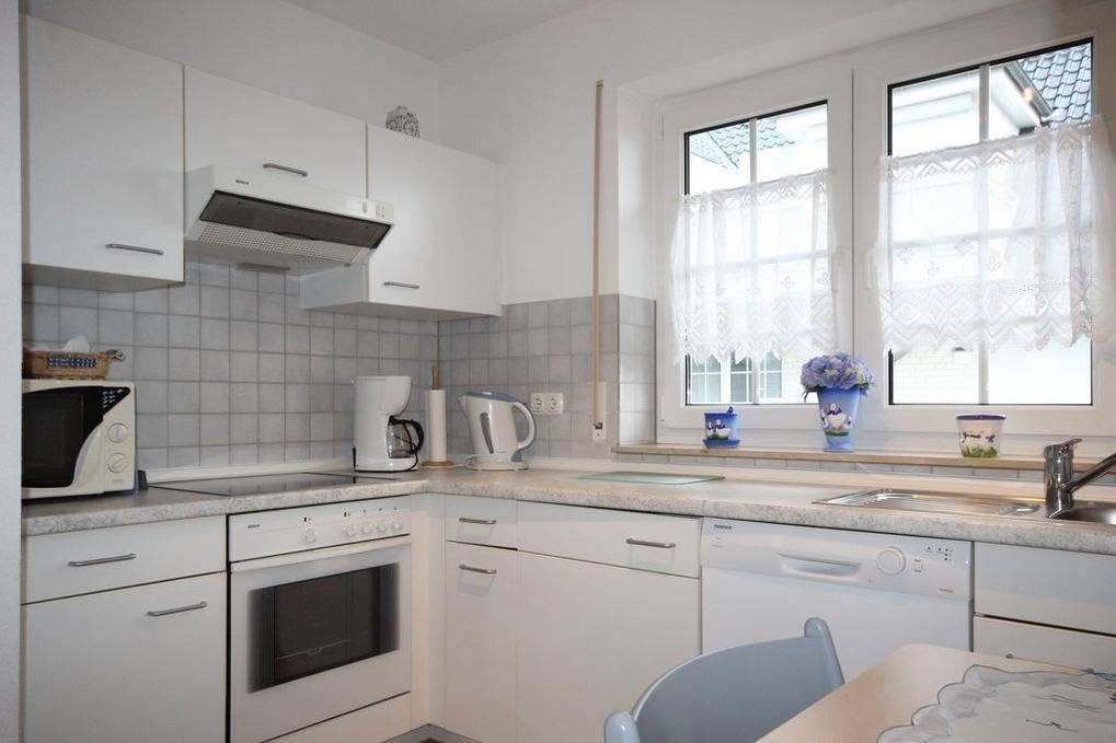 Die Einbauküche ist mit E-Herd-Backofen + Ceran-Kochfeld, Kühlschrank, Geschirrspüler, Mikrowelle & allen üblichen Geräten sehr gut ausgestattet.