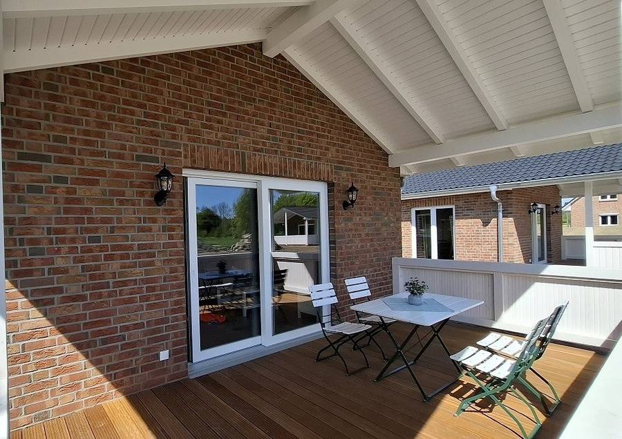 Nahe Grömitz befindet sich der idyllisch gelegene Hof Hagen weit ab von Trubel und Straßenlärm. Hier befinden sich die in 2025 neu errichteten Ferienhäuser. Sie bieten 51 m² ebenerdige Wohnfläche und verfügen über 2 Schlafzimmer, einen Wohn- und Essbereich mit Küche und ein Badezimmer mit Dusche. Die Ferienhäuser stehen einzeln und haben eine überdachte Terrasse.
